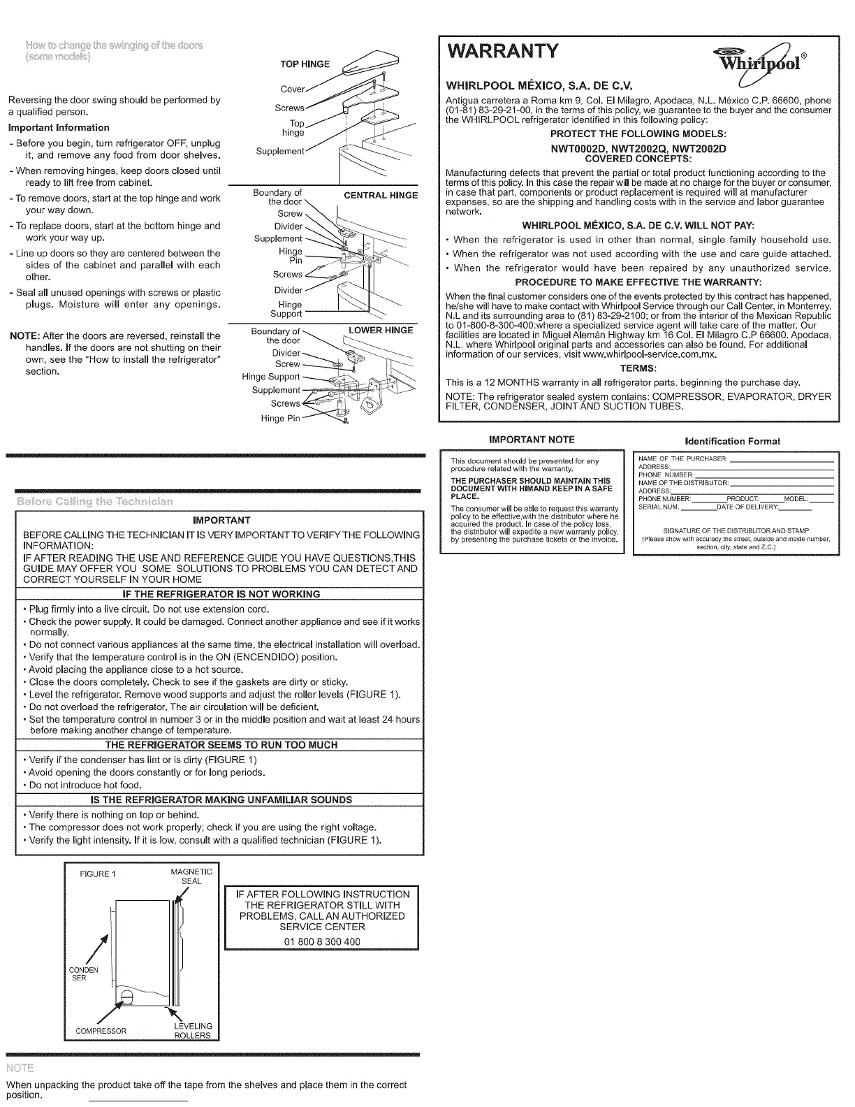 he/she will have to make contact with Whirlpool Service through our Call Center, in Monterrey,
