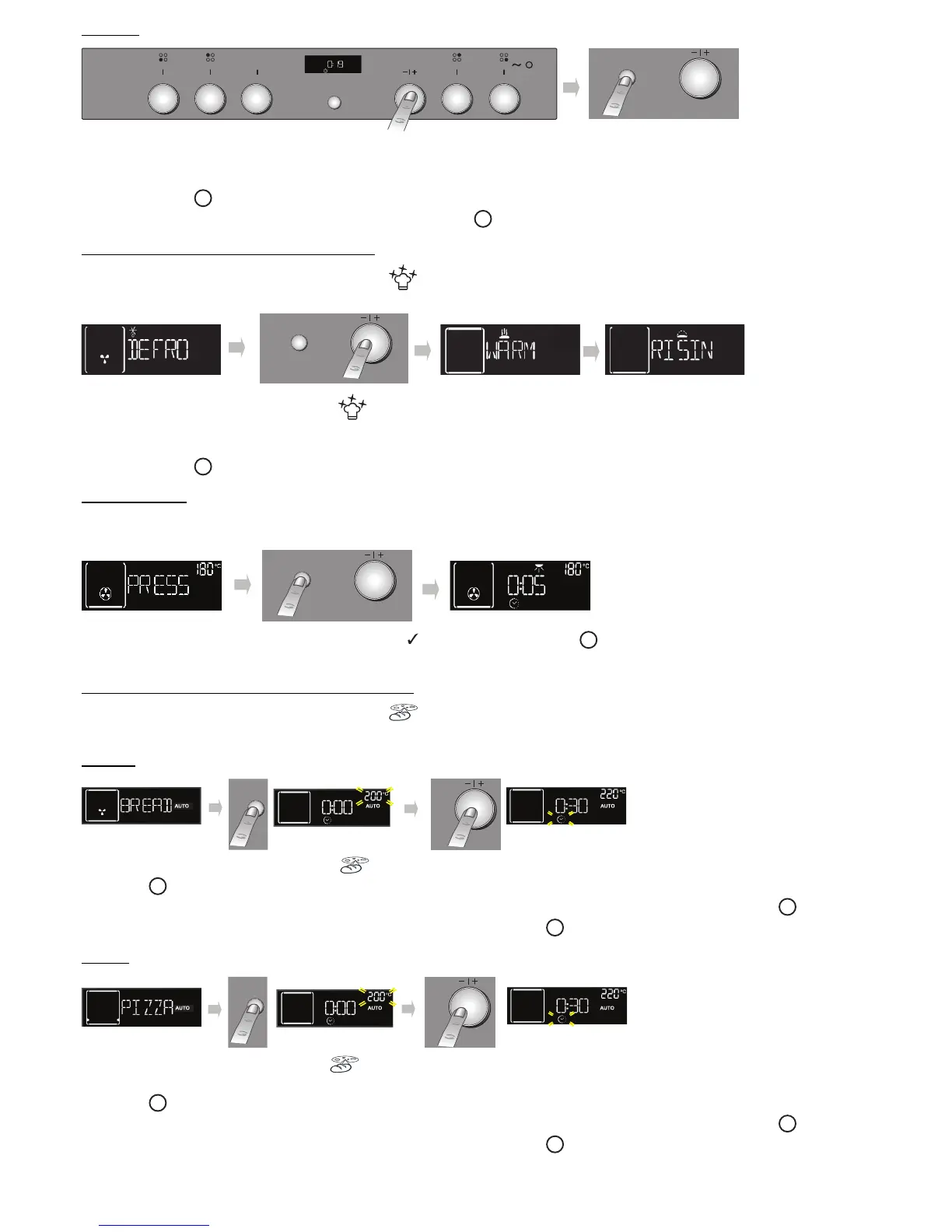 1. Turn the “Functions” knob to symbol : the display shows “ DEFROST” along with this function’s corresponding symbol.