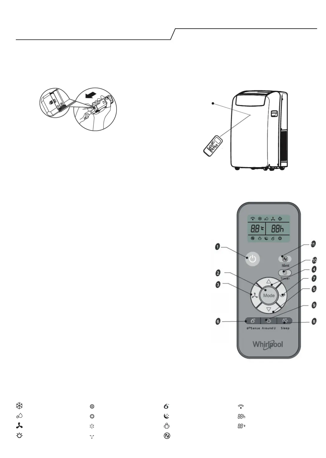1) Lyhyt painallus asettaa tai keskeyttää unitilatoiminnon. Unitila voidaan asettaa viilennys-,