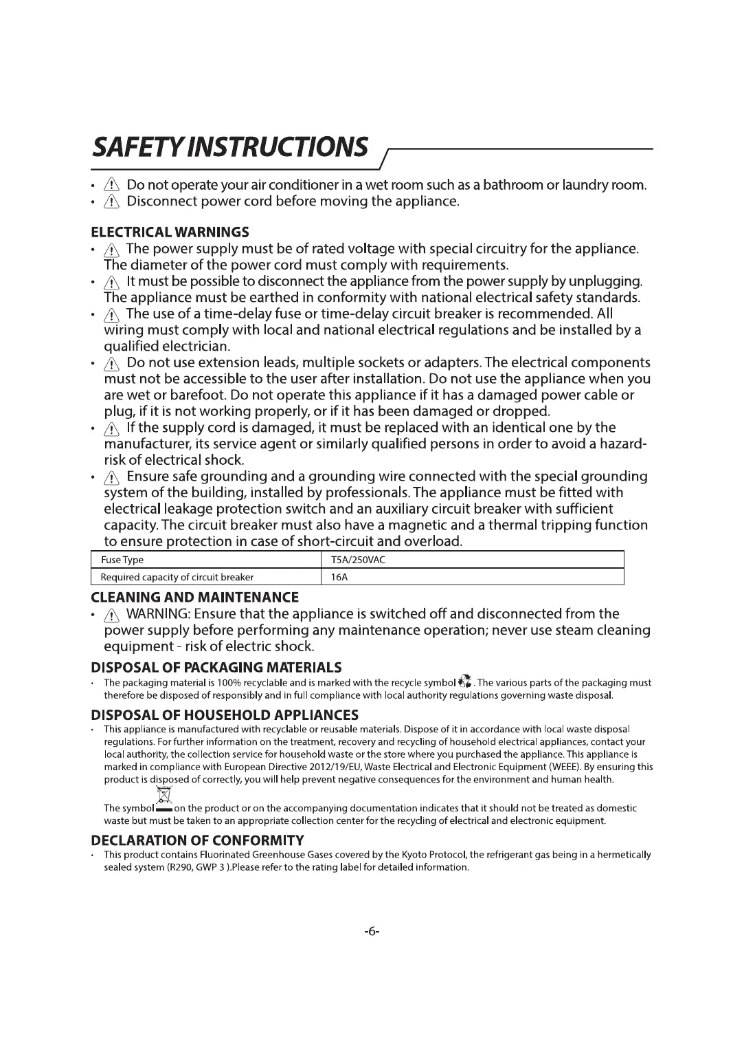 Whirlpool PACF212HPW - ELECTRICAL WARNINGS; CLEANING AND MAINTENANCE