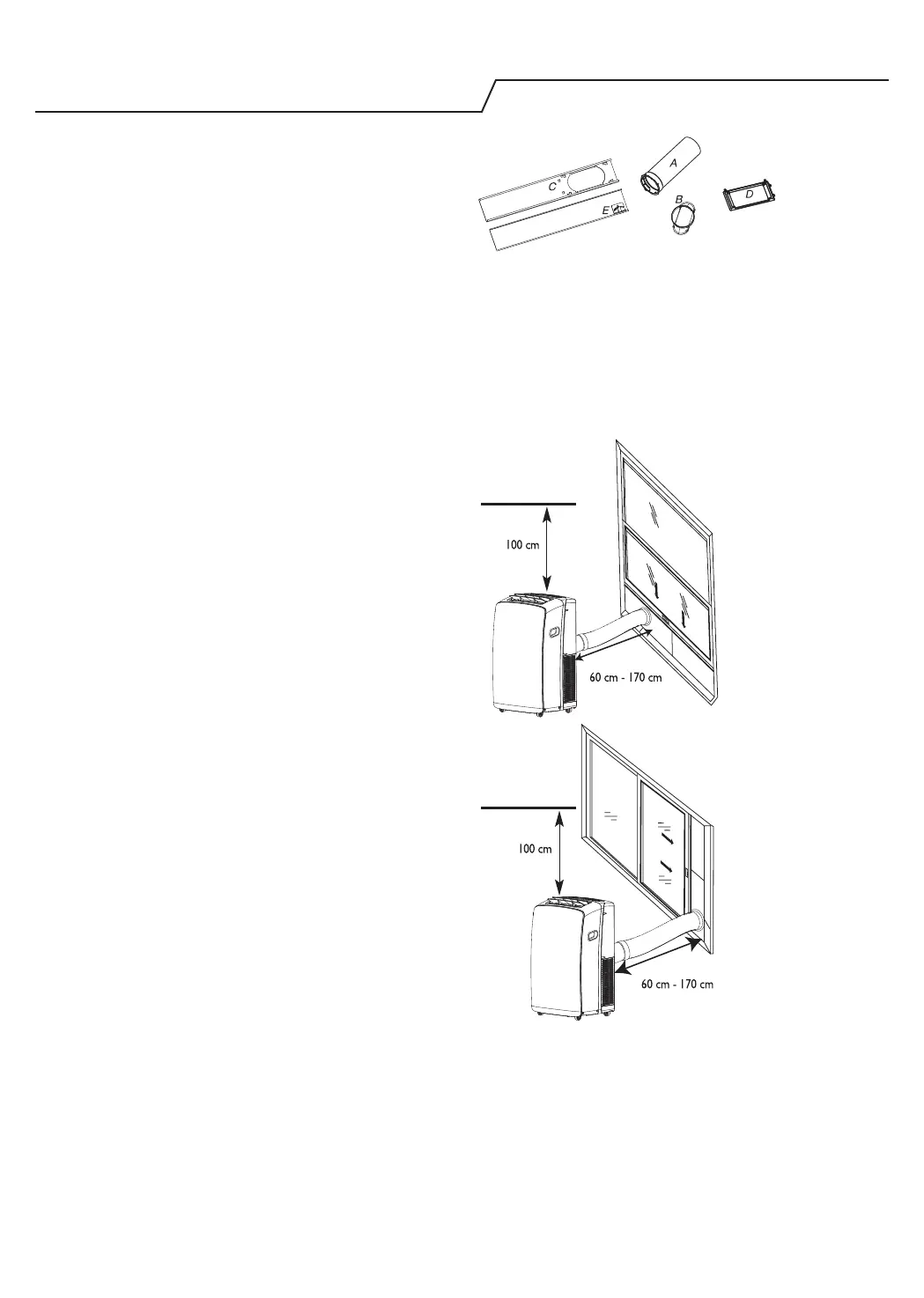 klimatizačního zařízení ve vzdálenosti 23 a1/2" až 67"
