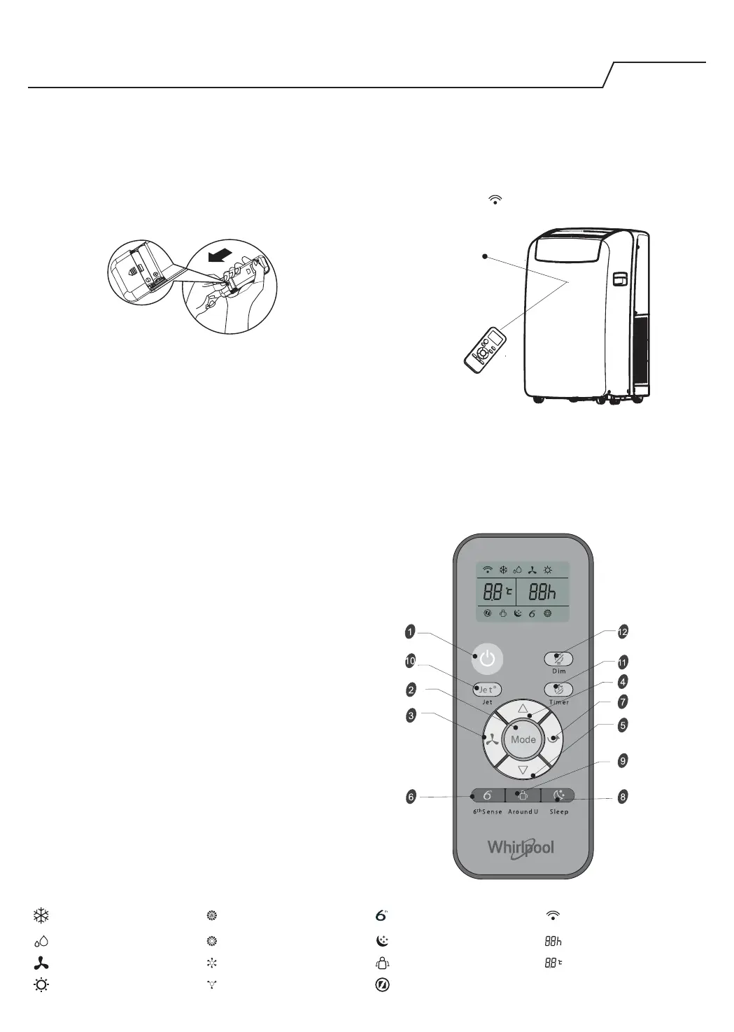 Індикатор увімкнення лише вентилятора Середня швидкість вентилятора Індикатор функції «Around U» Відображення встановленої температури