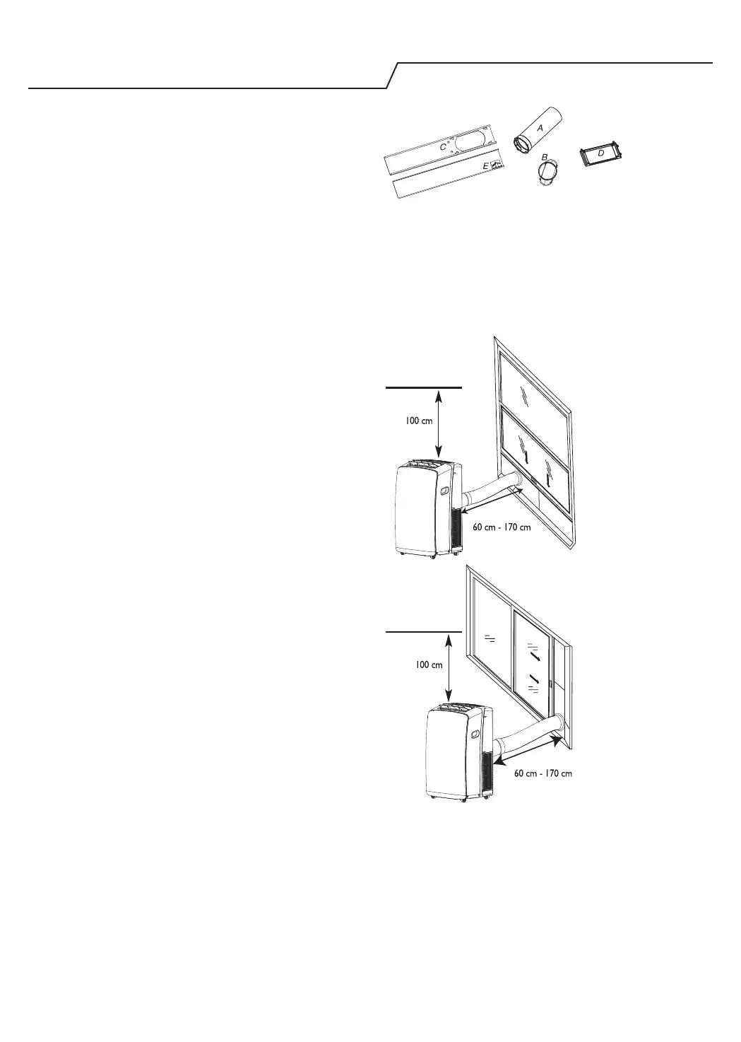 • Dank des exiblen Abluftschlauchs kann das Klimagerät