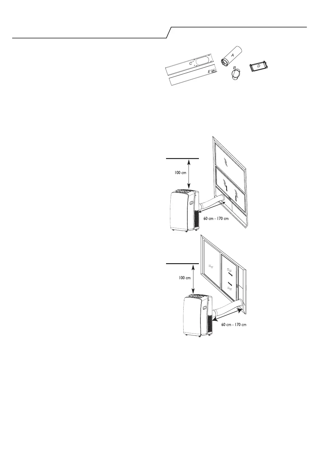klimaanlegget mellom 23 1/2” og 67” (60 cm og 170