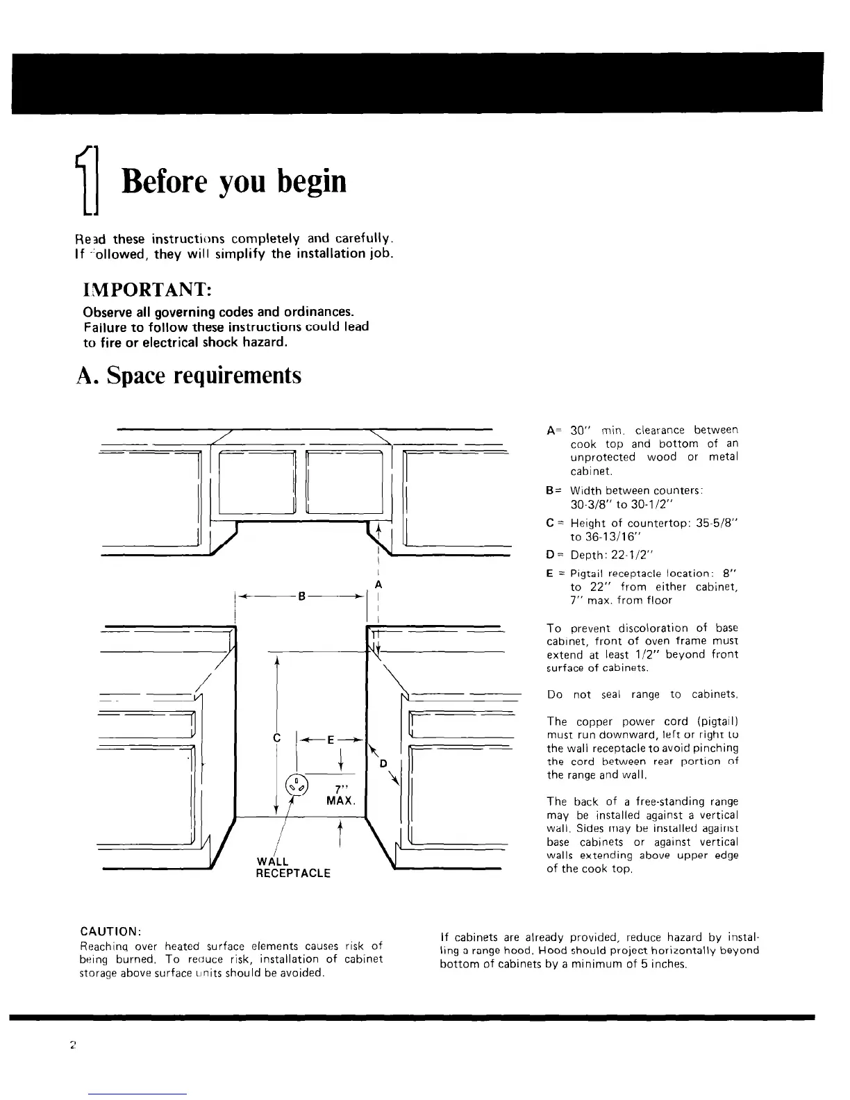 A= 30” min. clearance between