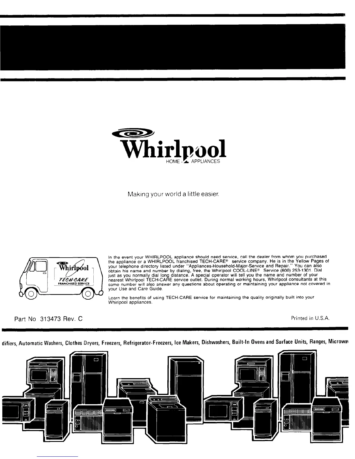 the appliance or a WHIRLPOOL franchised TECH-CARE@ service company. He is in the Yellow Pages of