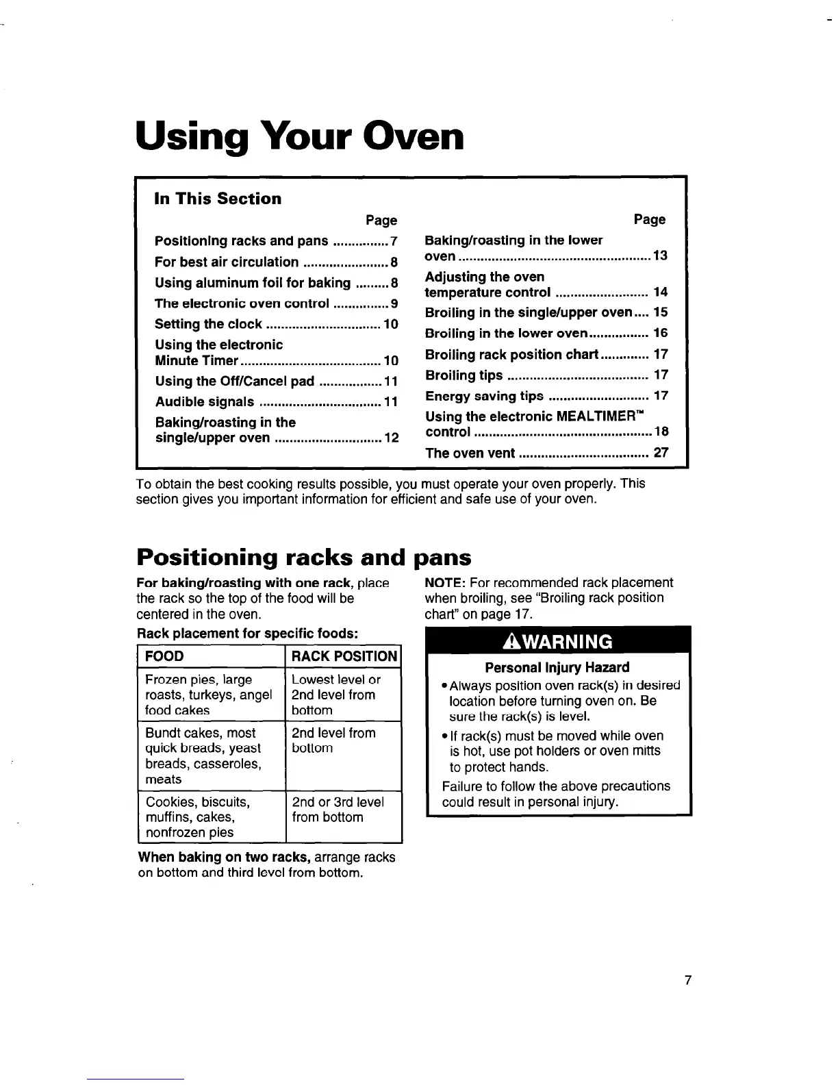 Positioning racks and pans . . . . . . . . . . . . . . . 7