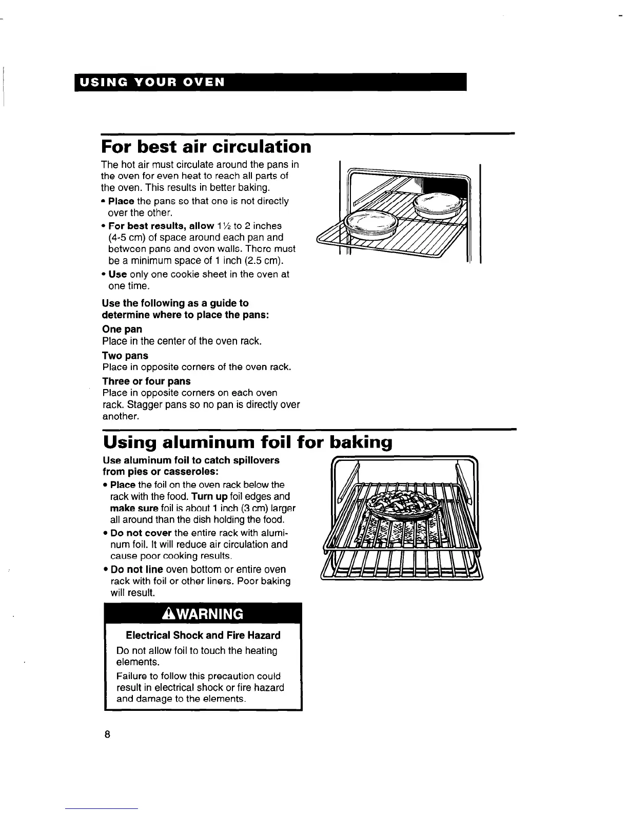 l Place the pans so that one is not directly