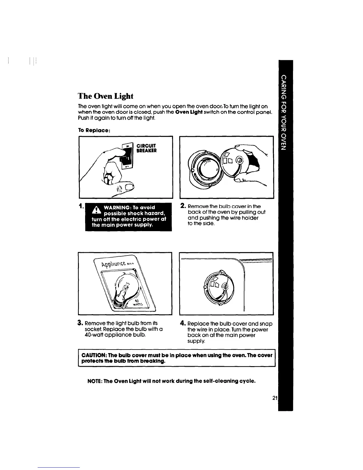 NOTE: The Oven light will not work during the self-cleaning cycle.