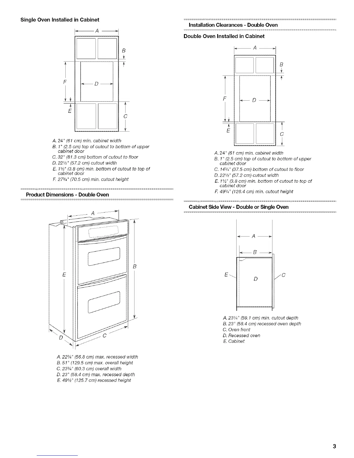 E. 1V2"(3.8 cm) min. bottom of cutout to top of