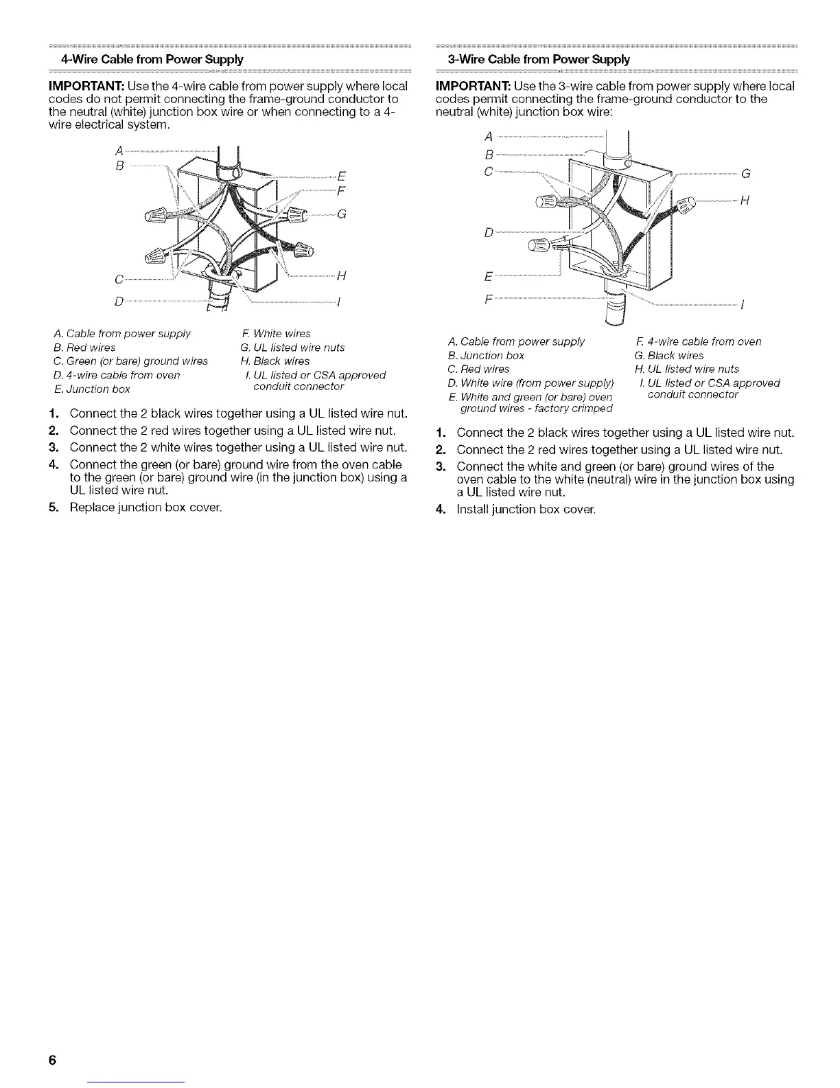 oven cable to the white (neutral) wire in the junction box using