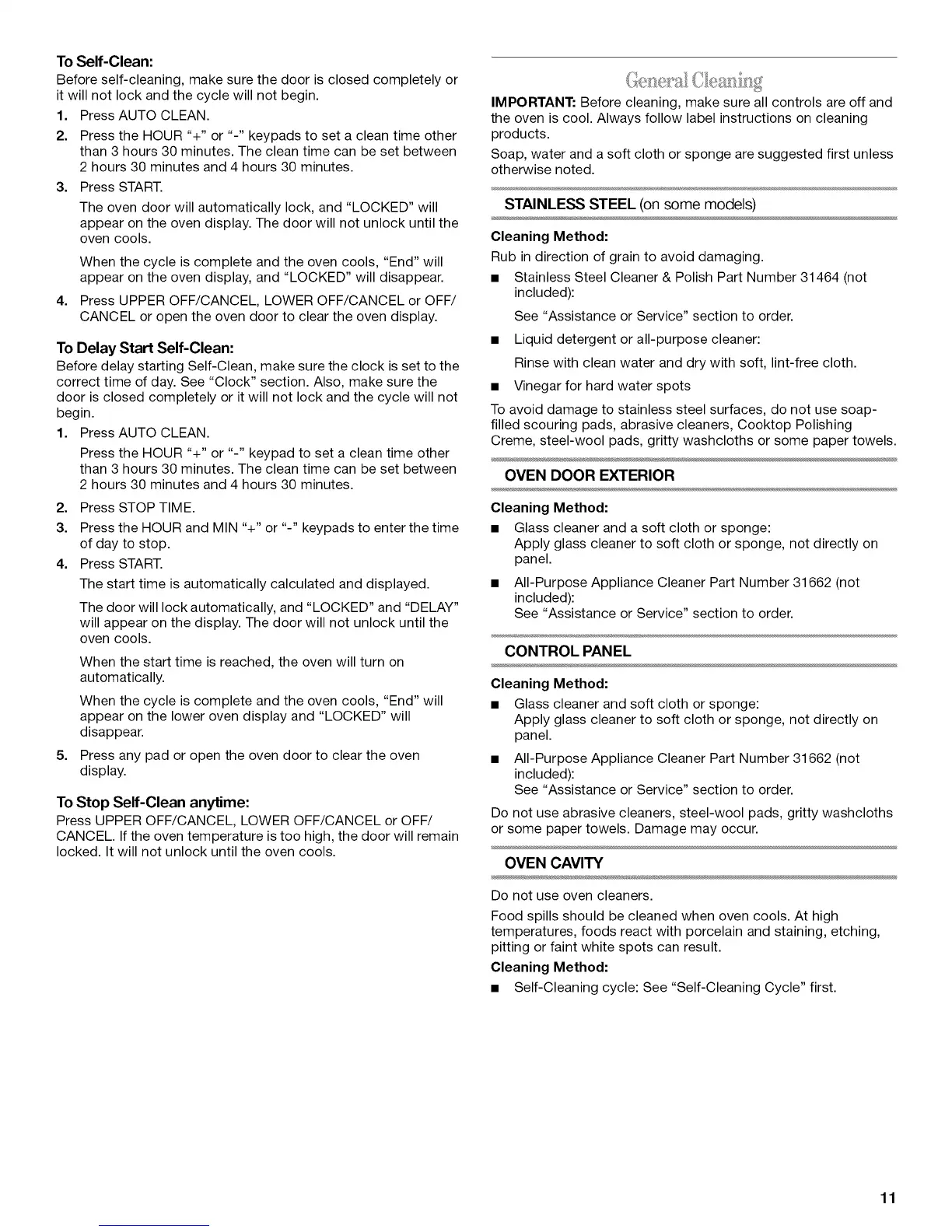 • Self-Cleaning cycle: See "Self-Cleaning Cycle" first.