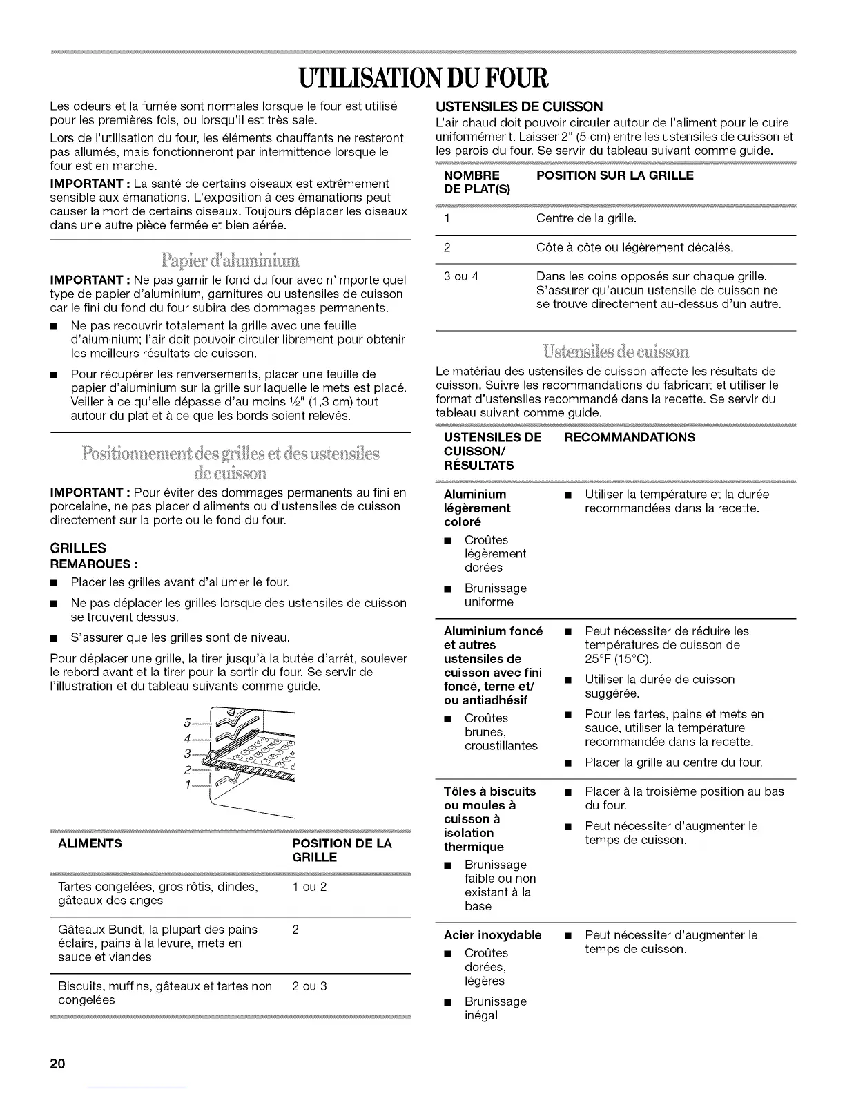 uniformement. Laisser 2" (5 cm) entre les ustensiles de cuisson et