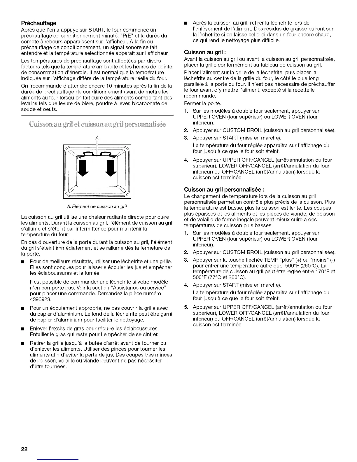 les aliments. Durant la cuisson au gril, I'element de cuisson au gril
