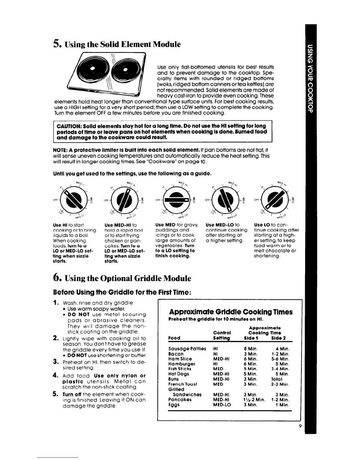 CAUTION: Solld elements stay hot for a long time. Do not use the HI sefflng for long
