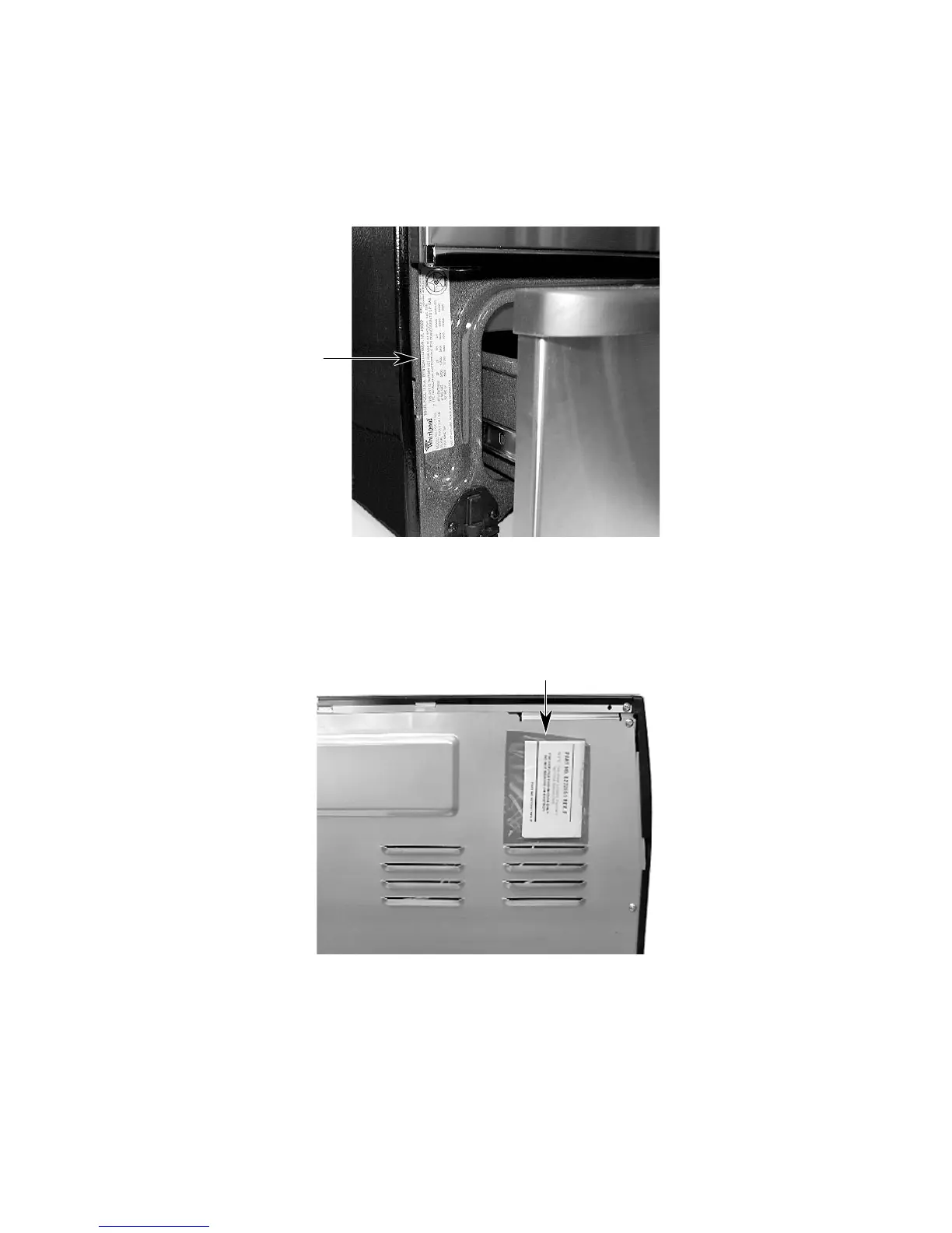 Whirlpool RF196LXK - MODEL & SERIAL NUMBER LABEL AND TECH SHEET LOCATIONS; Label and Tech Sheet Placement