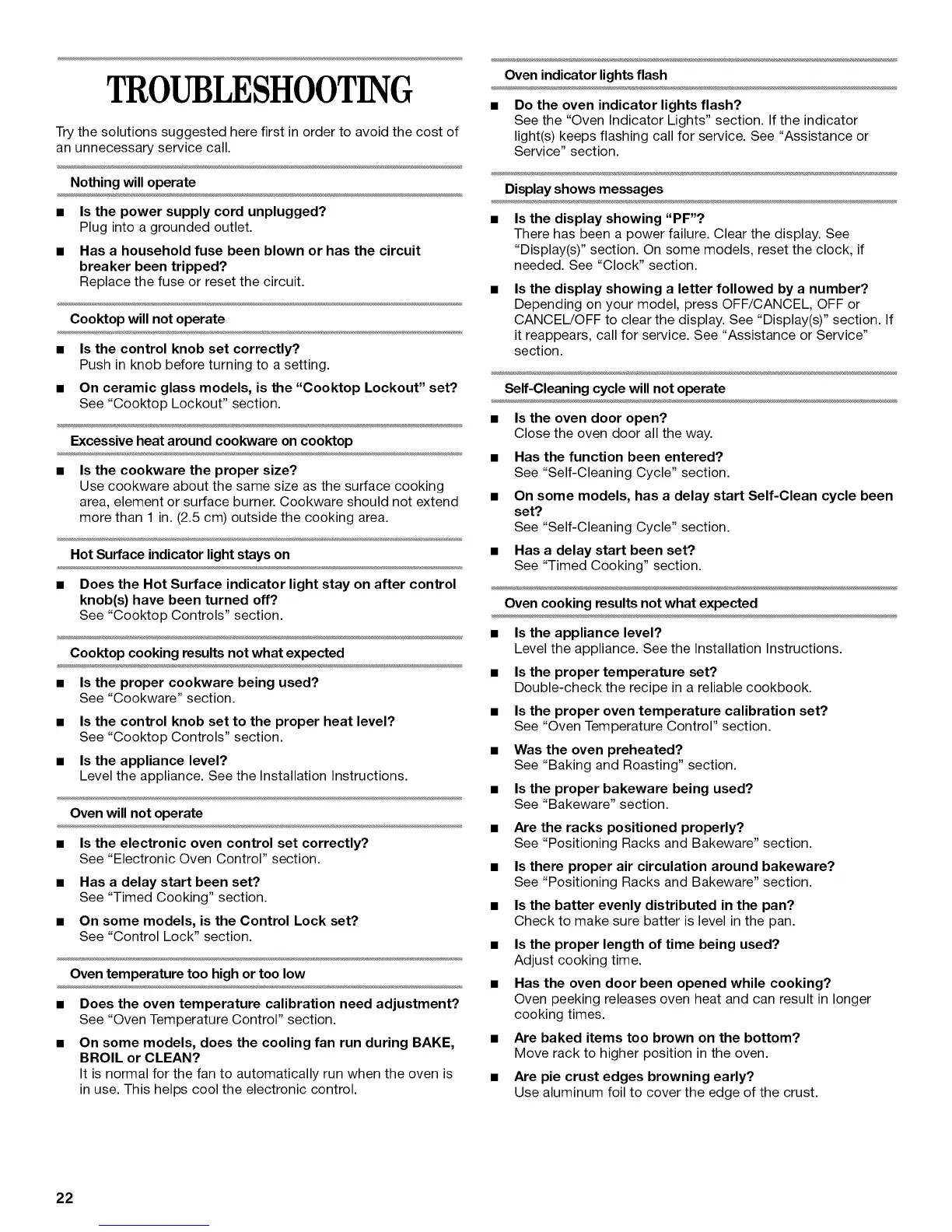 it reappears, call for service. See "Assistance or Service"