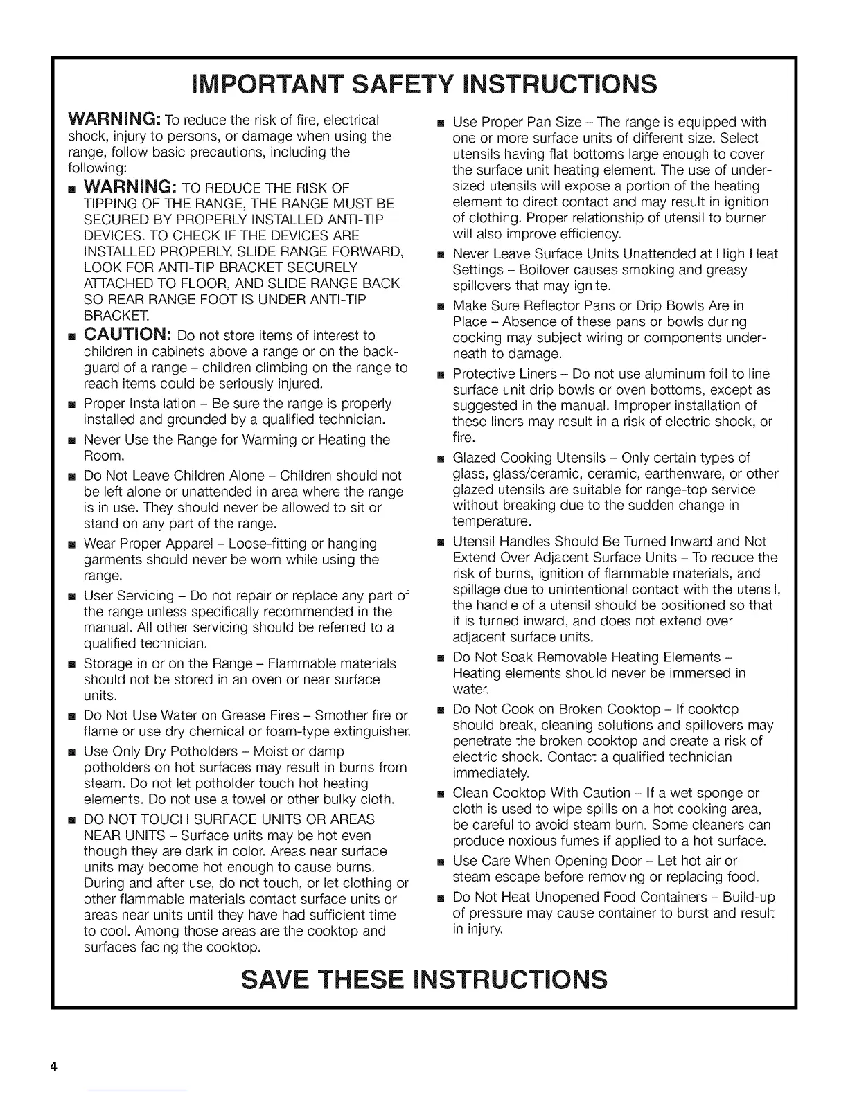 TIPPING OF THE RANGE, THE RANGE MUST BE