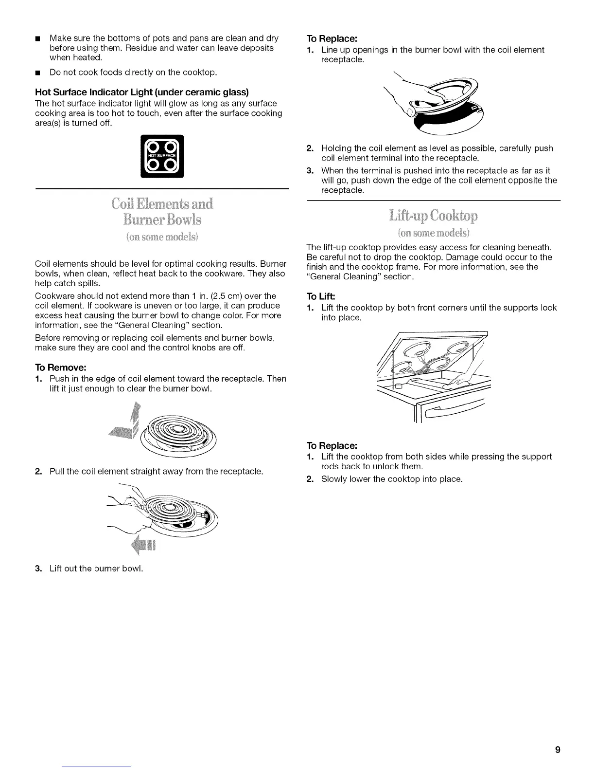 Before removing or replacing coil elements and burner bowls,