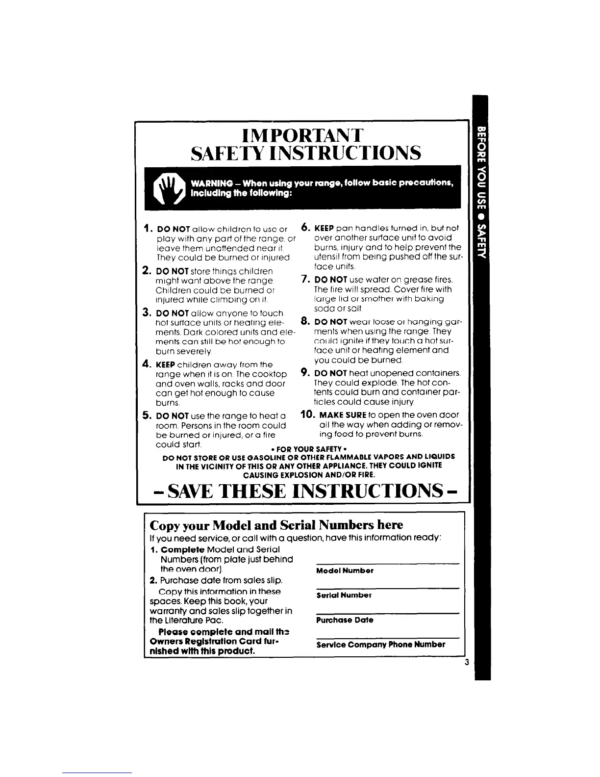 IN THE VICINITY OF THIS OR ANY OTHER APPLIANCE. THEY COULD IGNITE