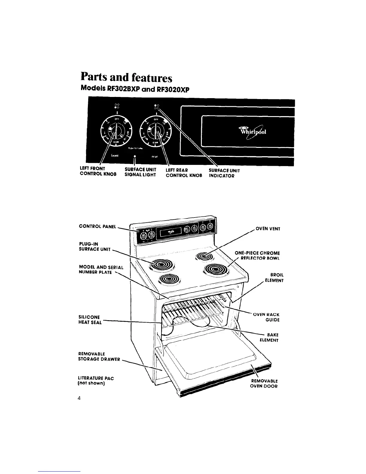 Whirlpool RF3020XP - Parts and Features