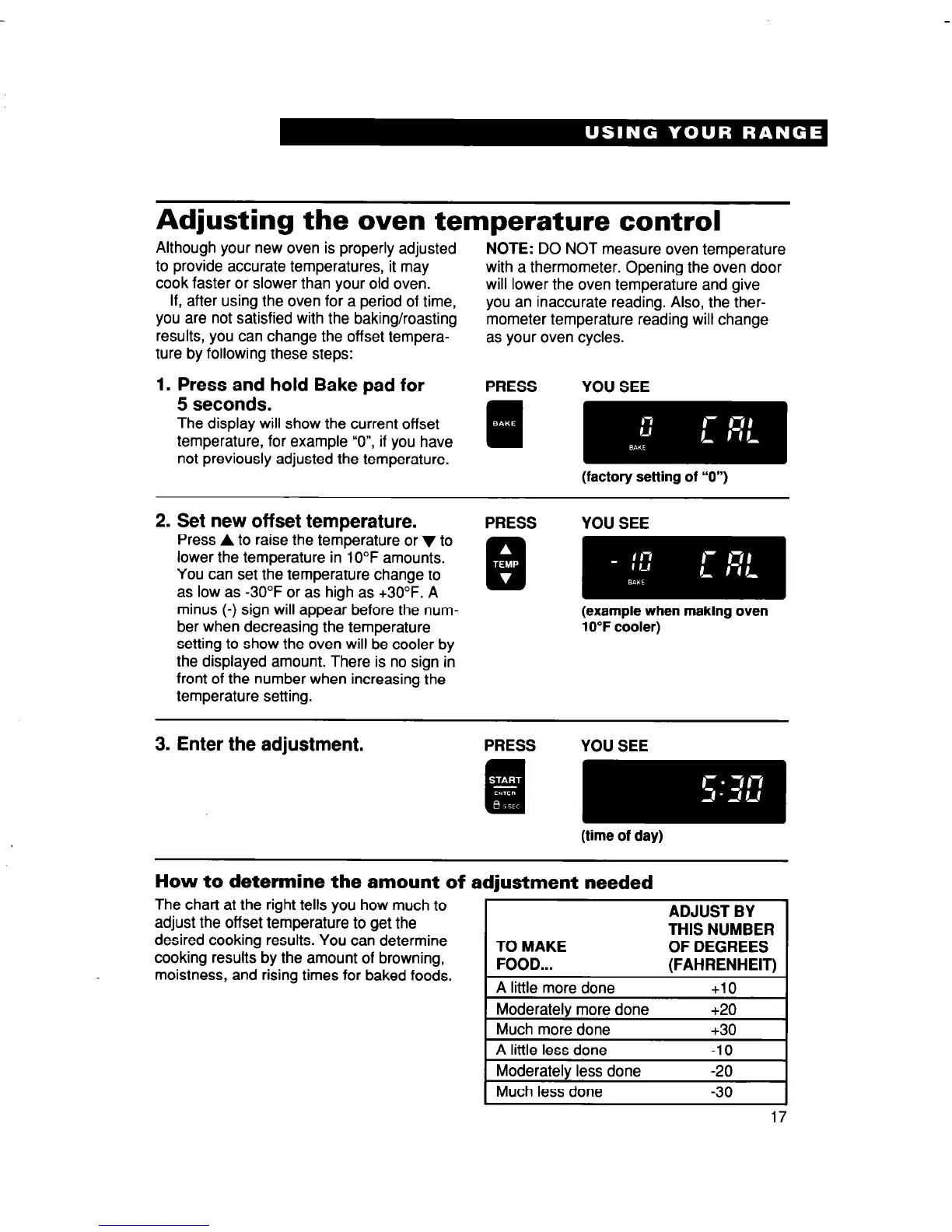 results, you can change the offset tempera- as your oven cycles.