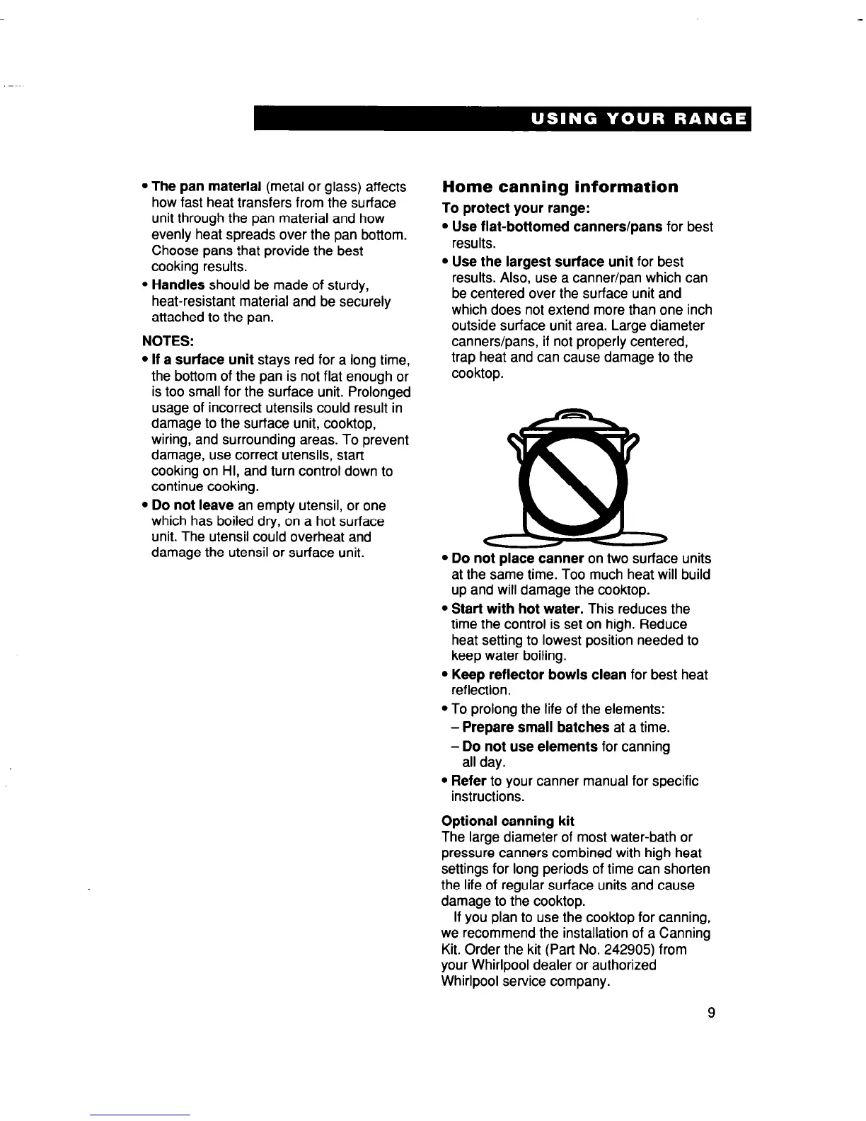 damage the utensil or surface unit.