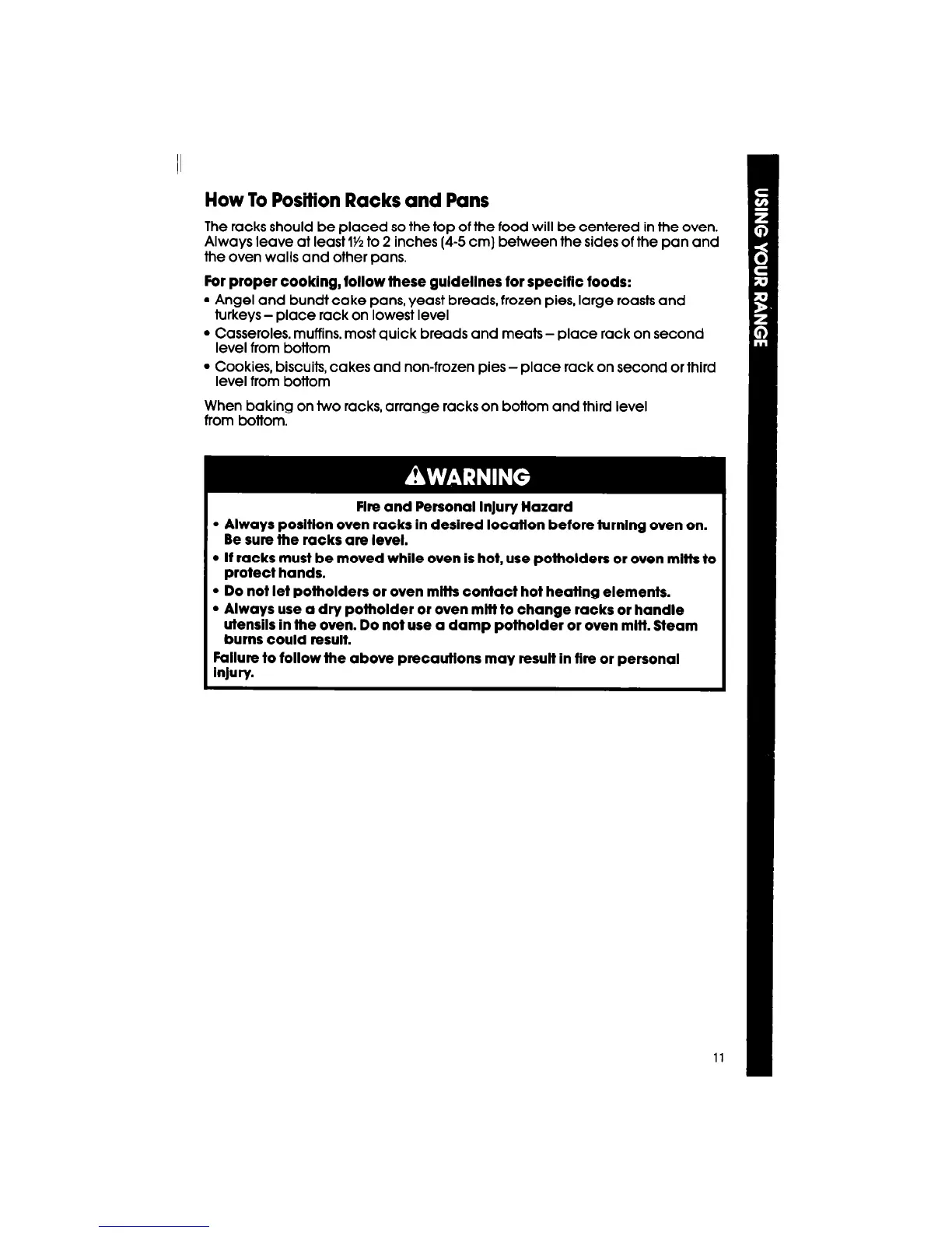 Always posltion oven racks in desired location before furnlng oven on.