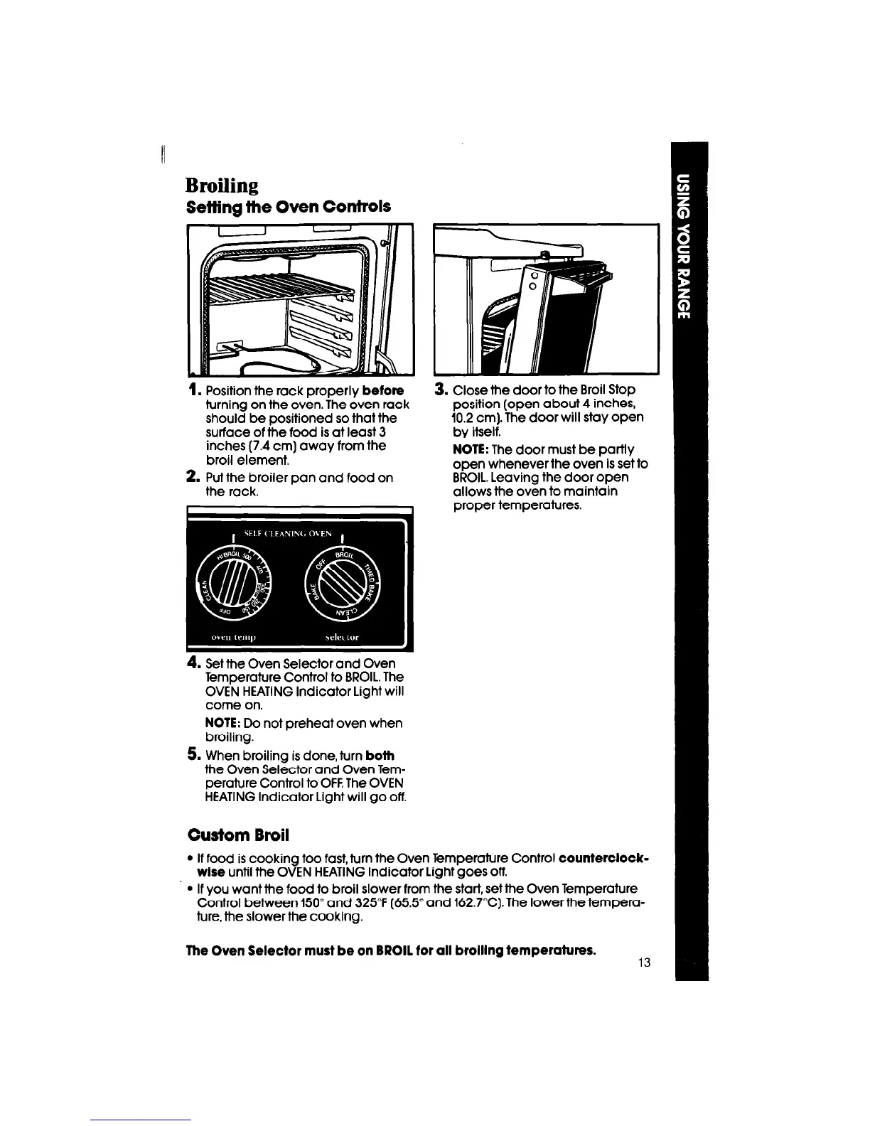 The Oven Selector must be on BROIL for all brolllng temperatures.