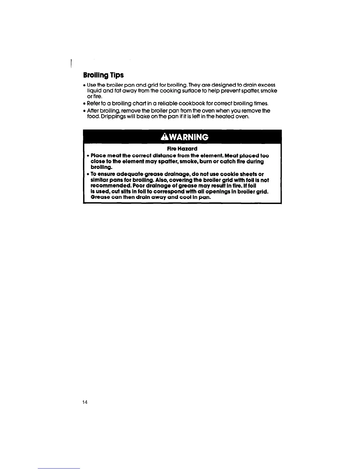 l Use the broiler pan and grid for broiling. They are designed to drain excess