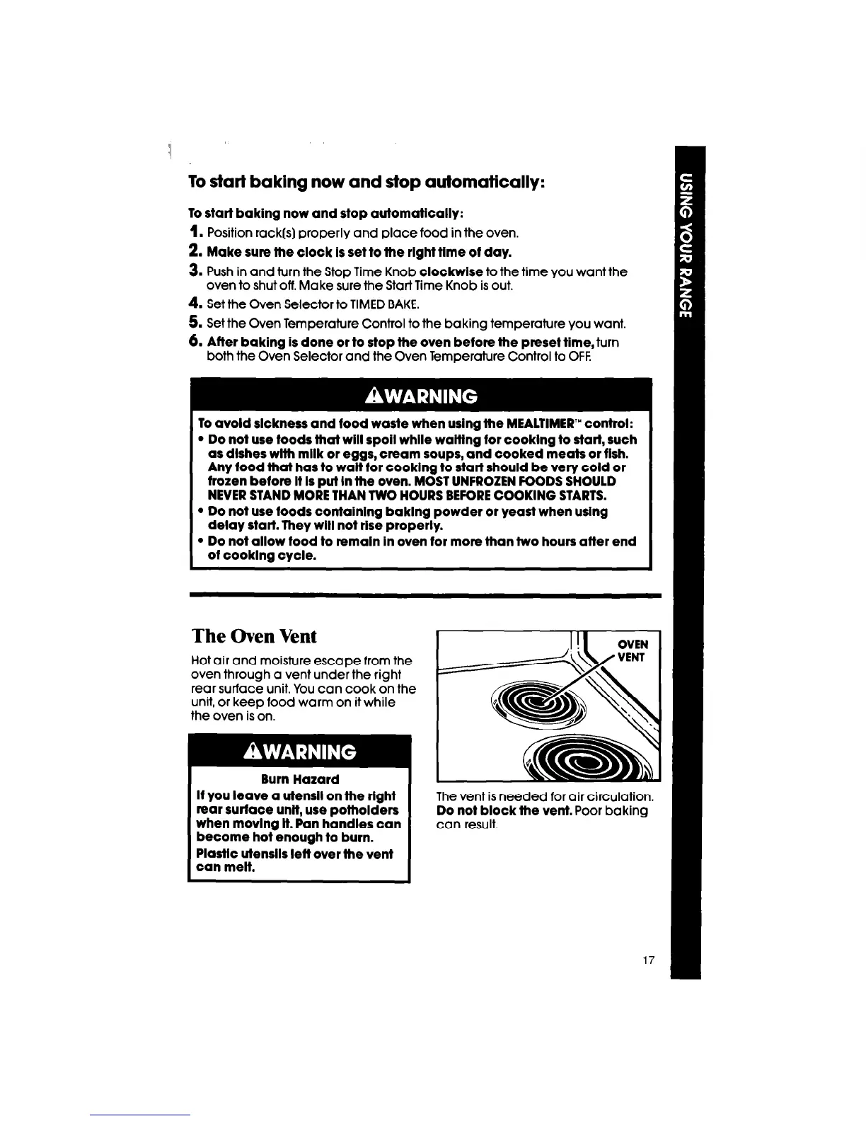 Do not allow food to remain In oven for more than two hours atter end