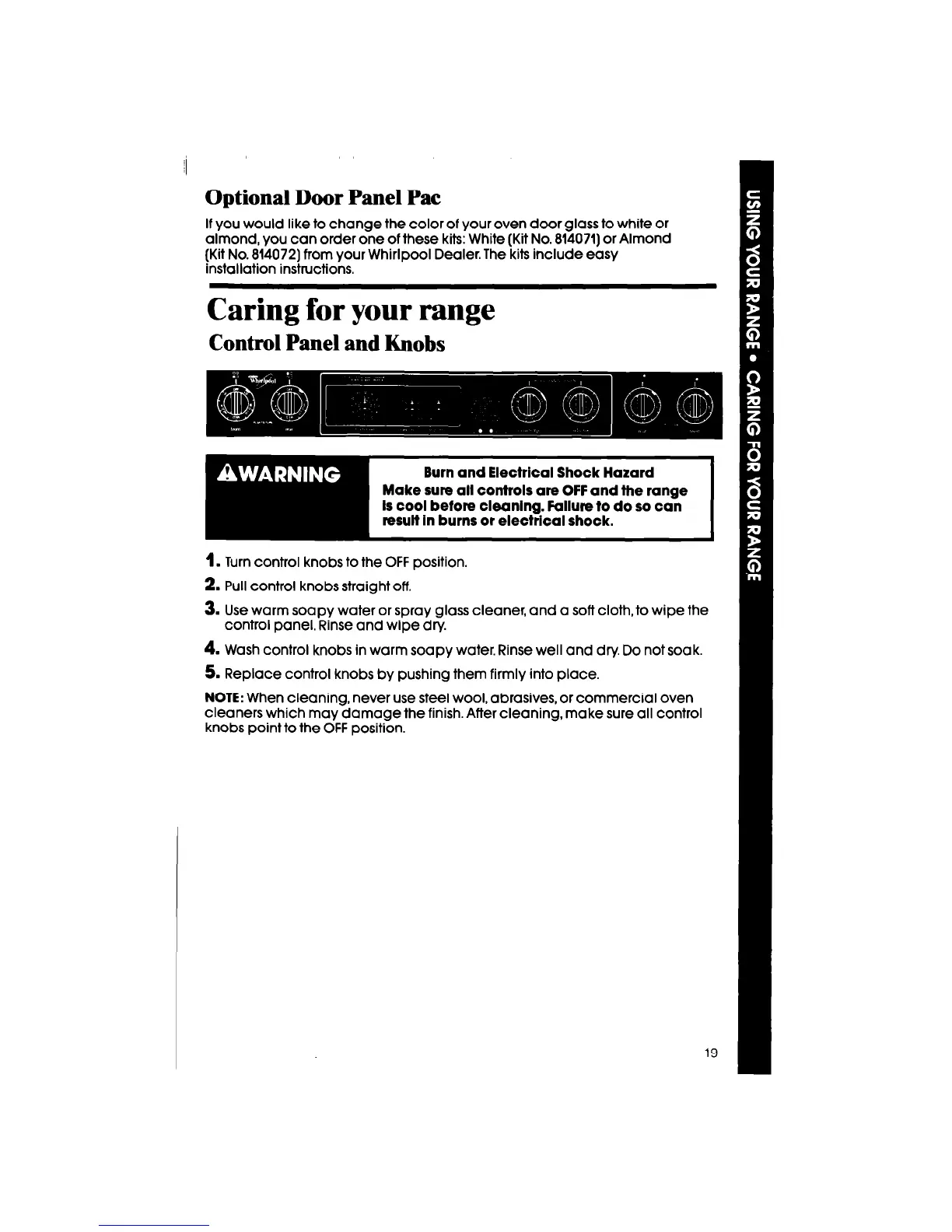 4. Wash control knobs in warm soapy water. Rinse well and dry. Do not soak.