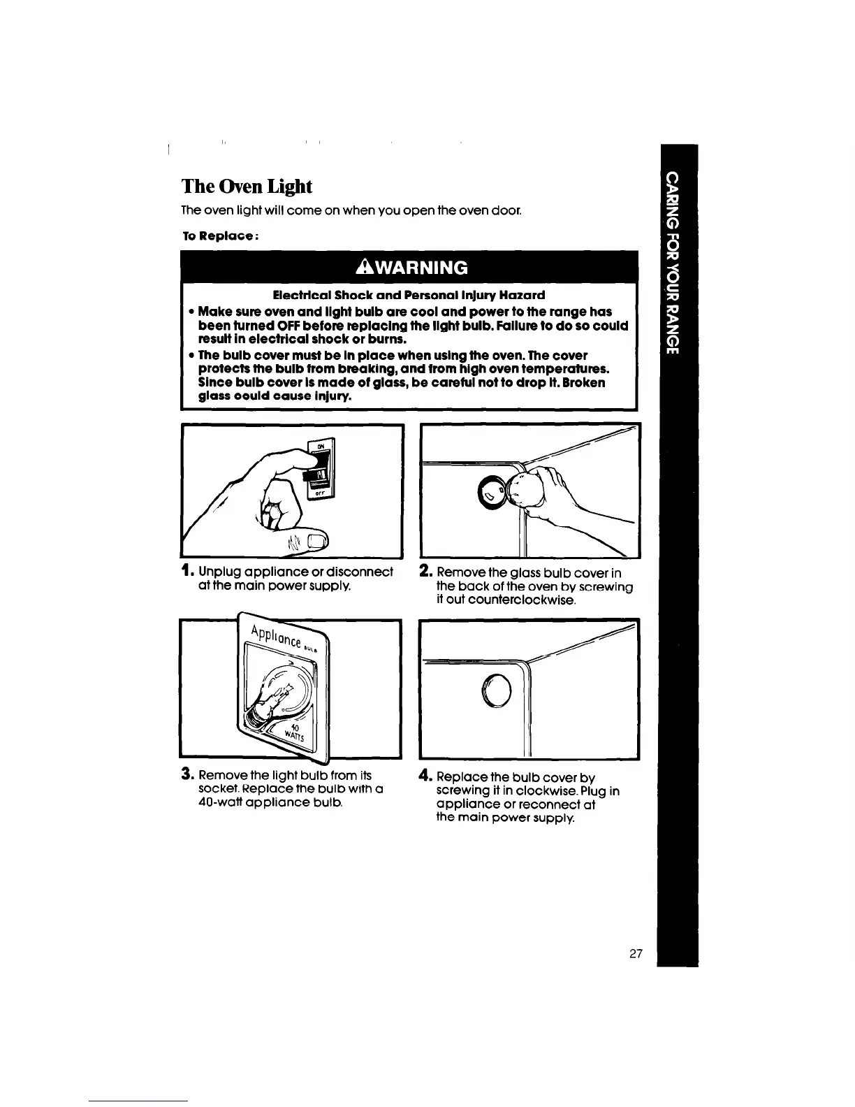 been turned OFF before replaclng the light bulb. Failure to do so could