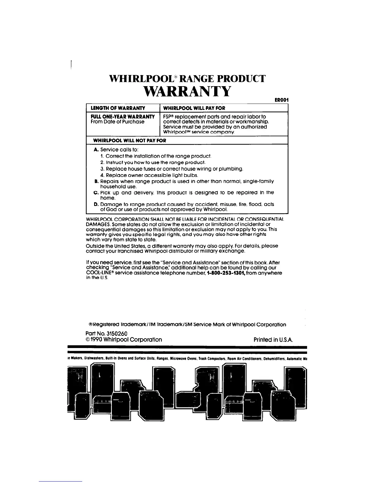 WHIRLPOOL CORPORATION SHALL NOT BE LIABLE FOR INCIDENTAL OR CONSEQUENTIAL