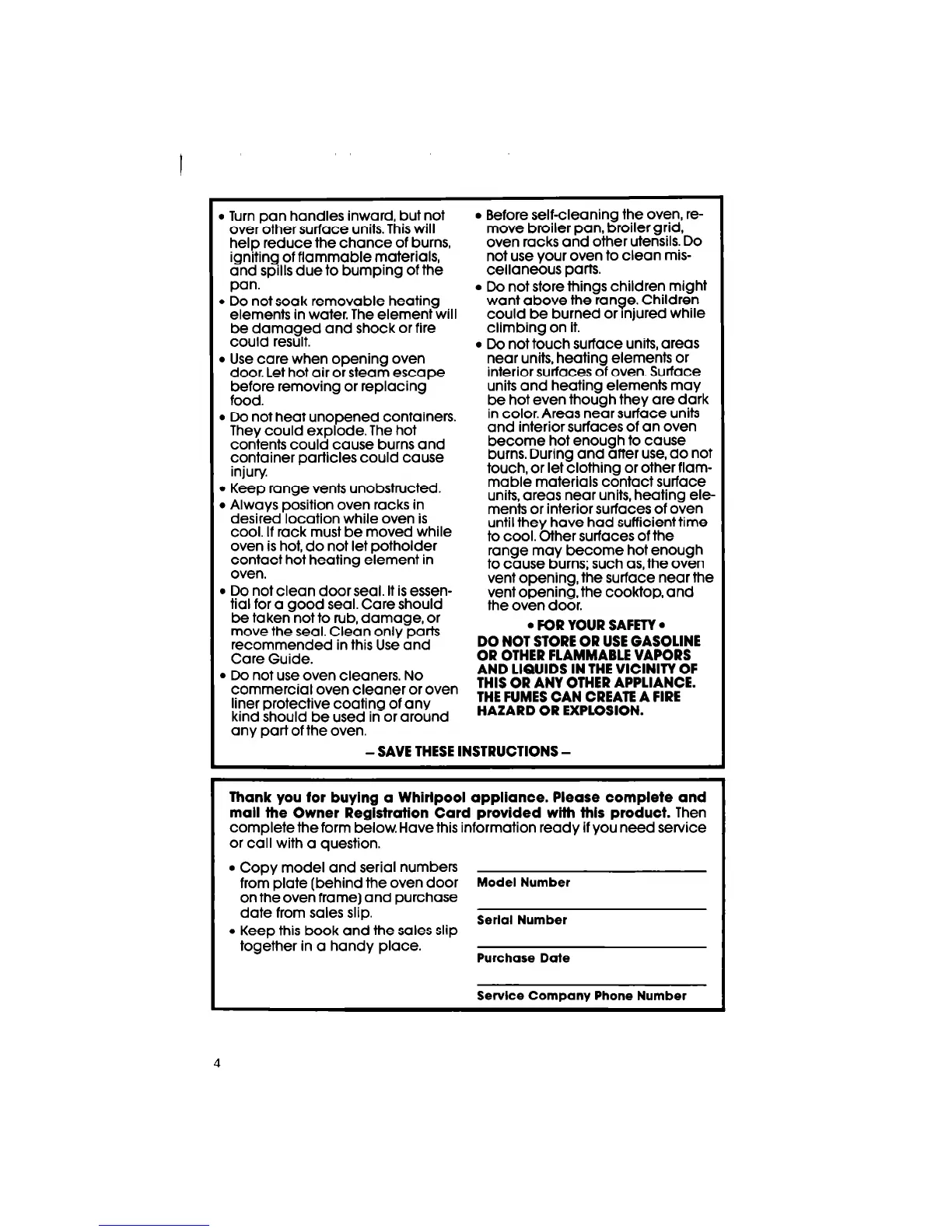 Thank you for buying a Whirlpool appliance. Please complete and