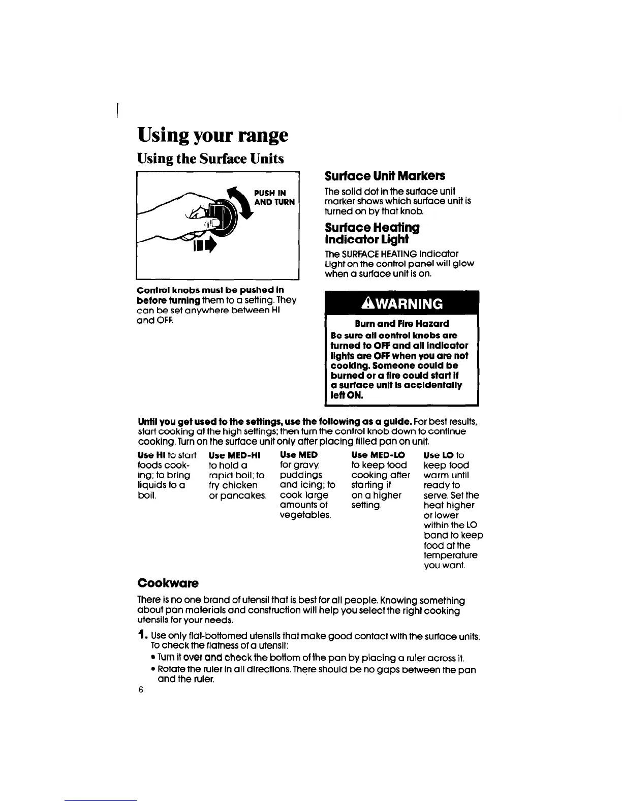 cooking. Turn on the surface unit only after placing filled pan on unit.