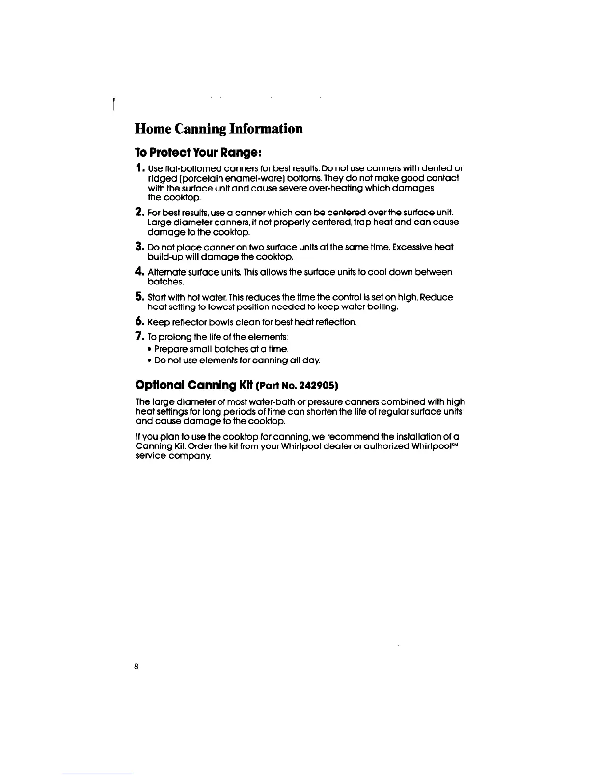 Canning Kit. Order the kit from your Whirlpool dealer or authorized WhirlpoolSM