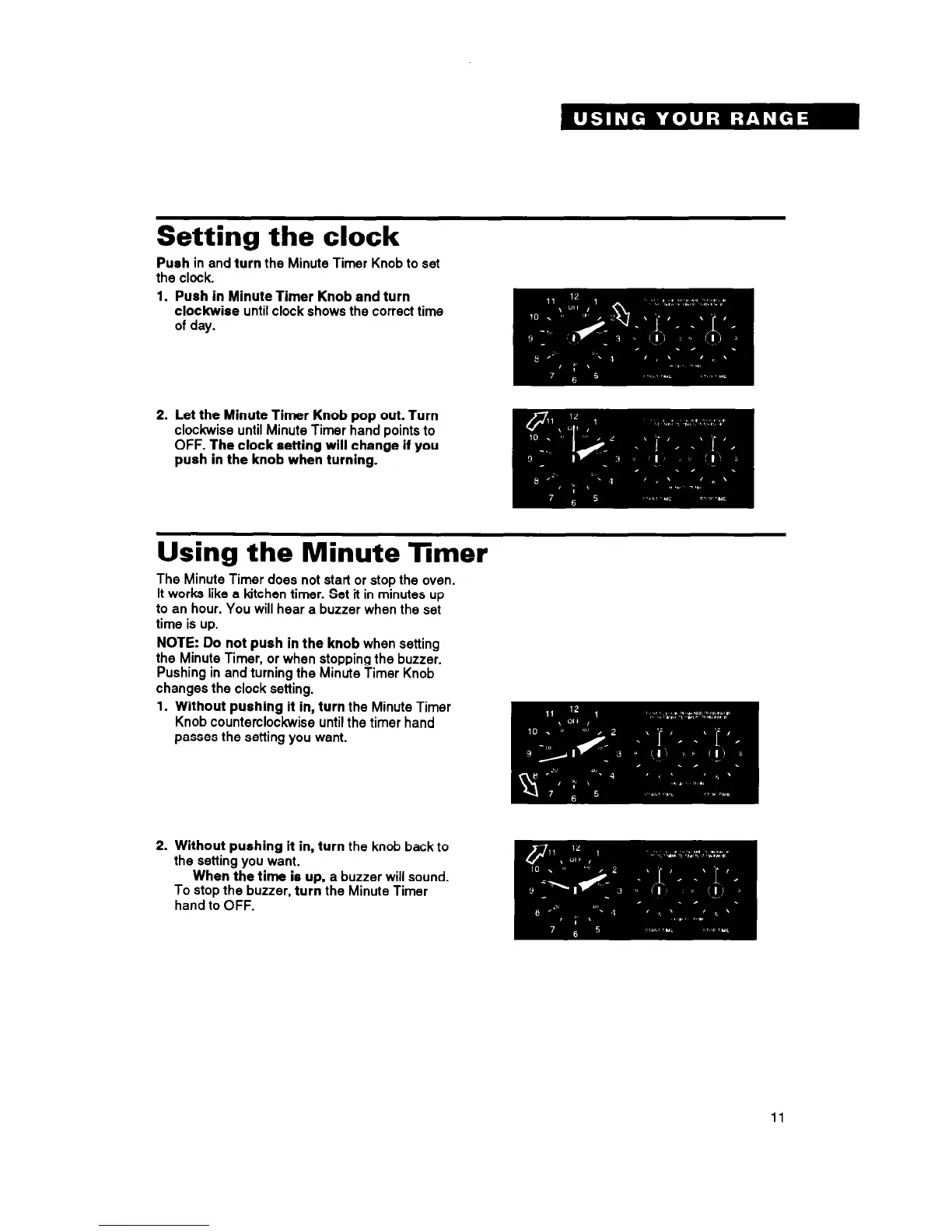 Push in and turn the Minute Timer Knob to set