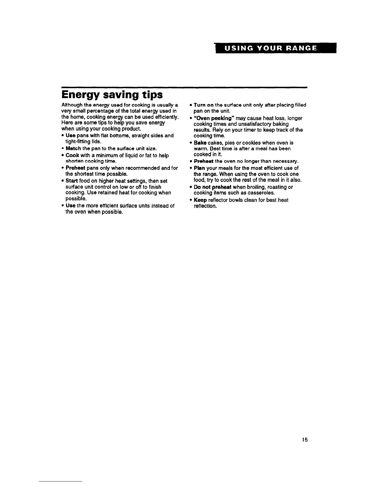 the range. When using the oven to cook one