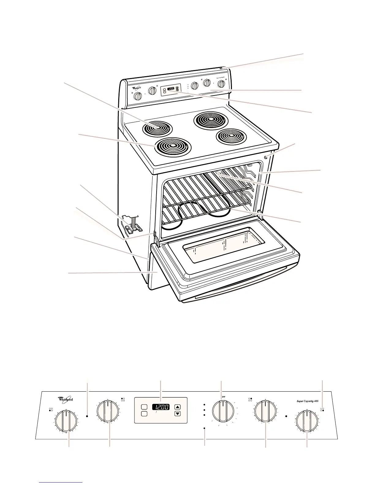 Whirlpool RF362BXG - Range Parts and Features Overview; Key Range Components; Control Panel Layout and Functions
