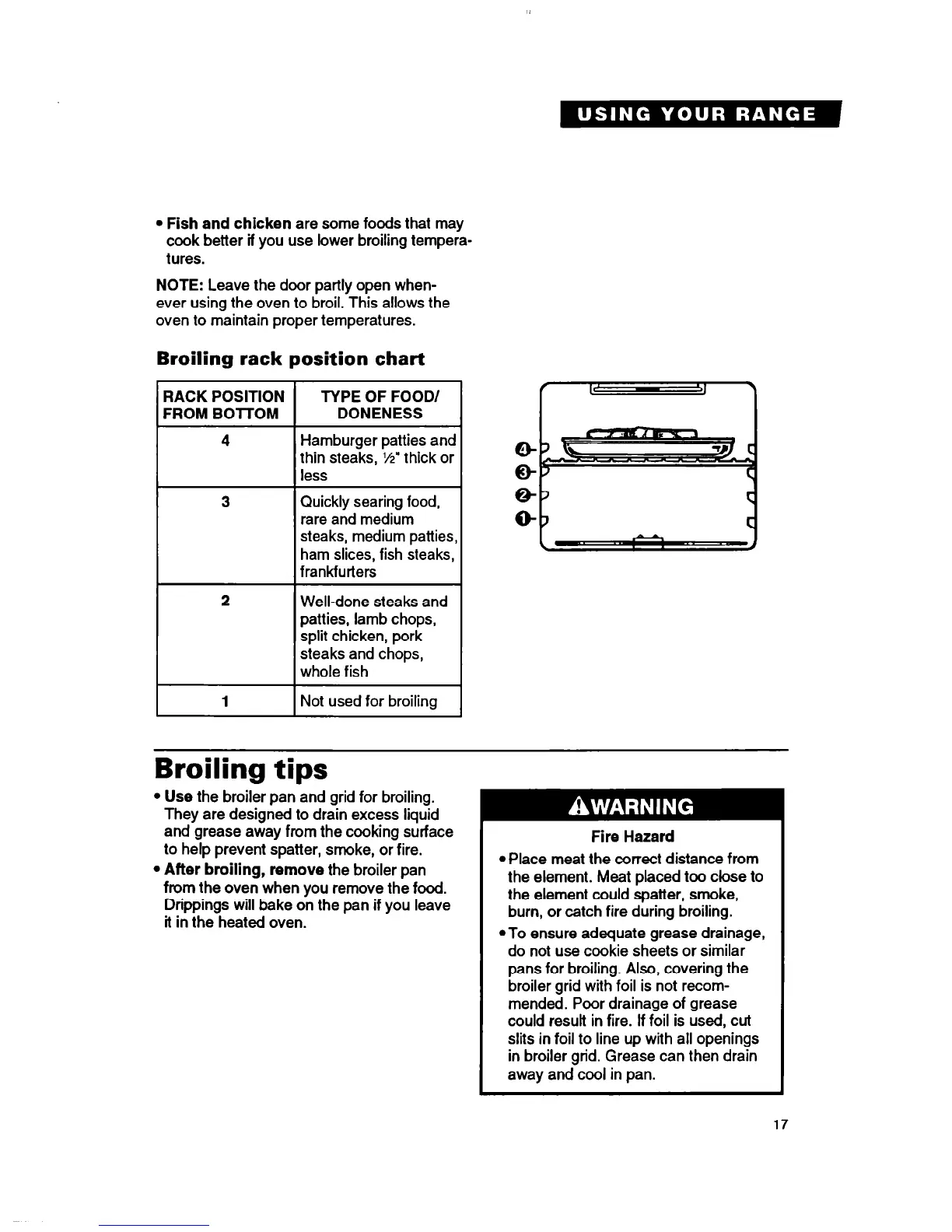 Broiling rack position chart