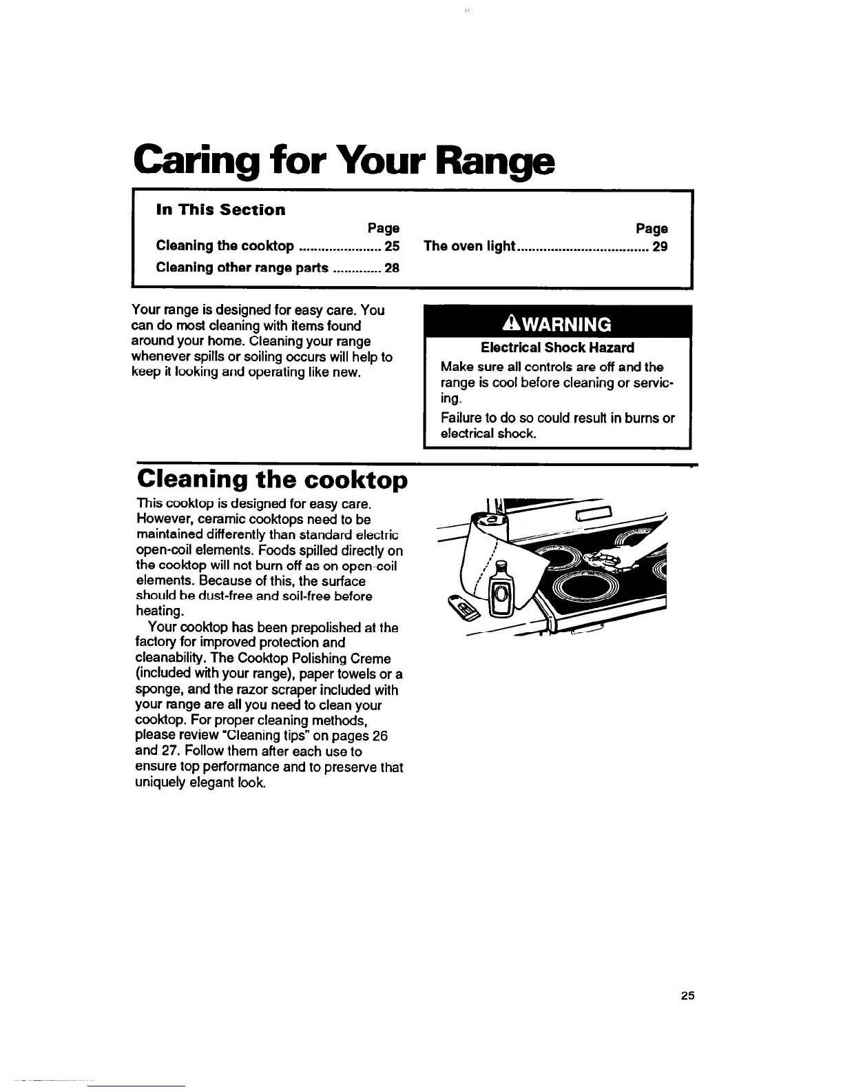 (included with your range), paper towels or a