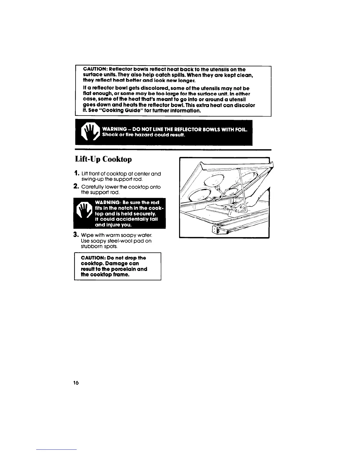 CAUTION: Reflector bowls reflect heat back to the utensils on the