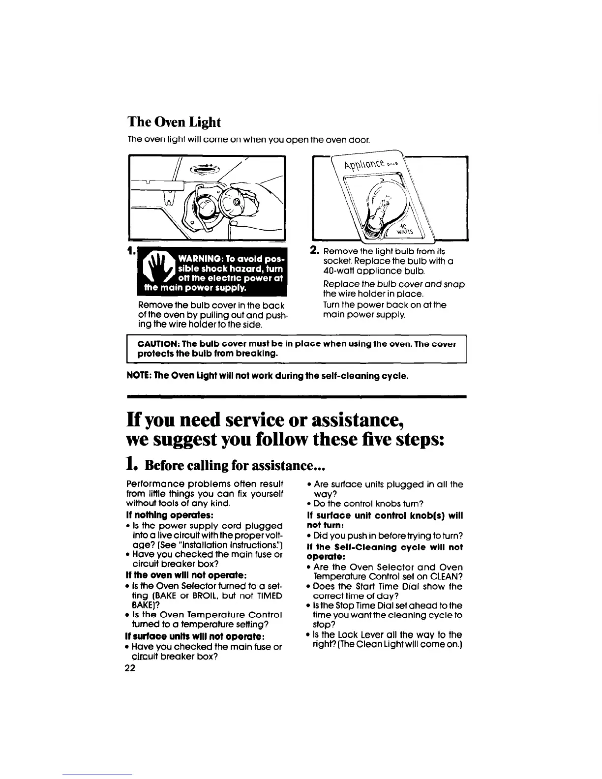 NOTE: The Oven light will not work during the self-cleaning cycle.
