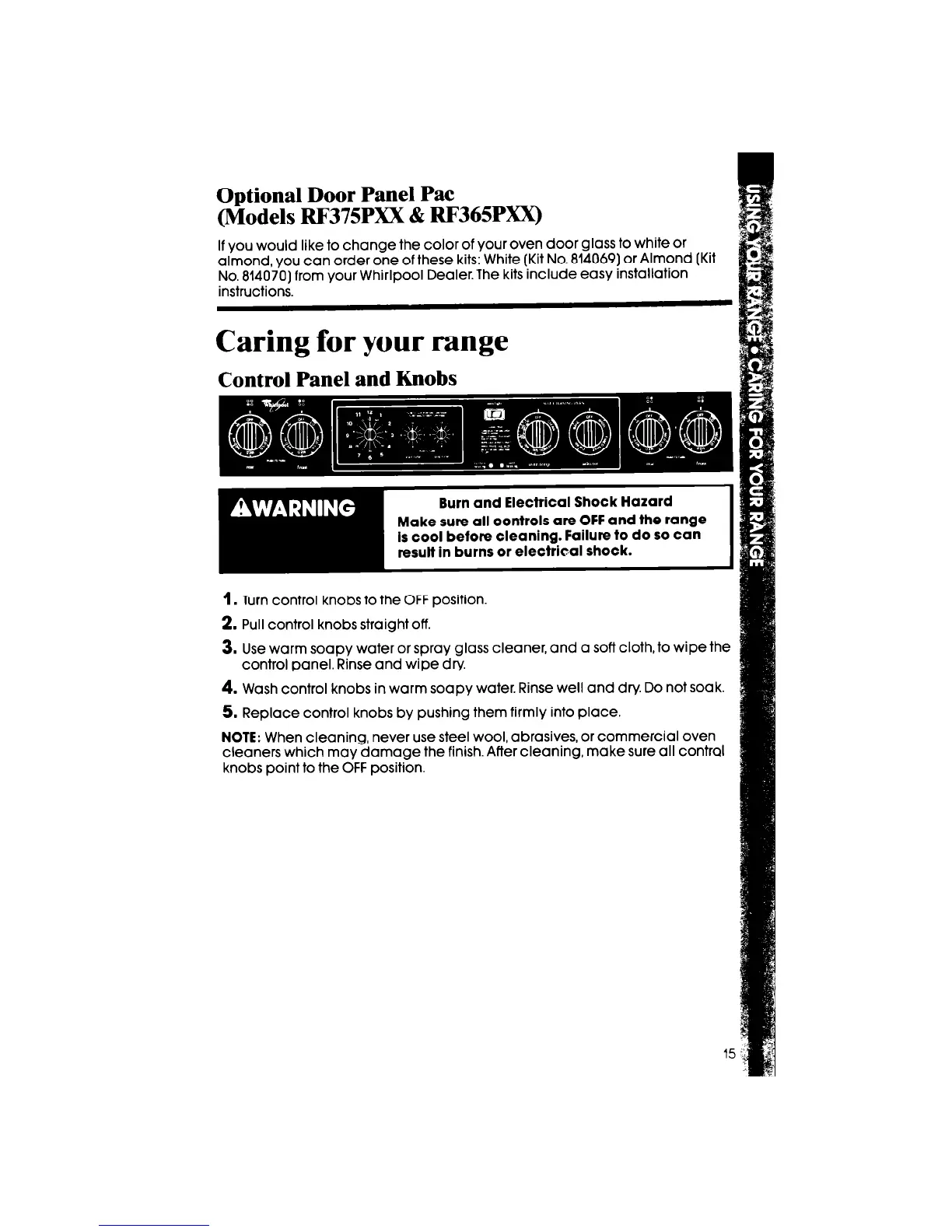 4. Wash control knobs in warm soapy water. Rinse well and dry. Do not soak.