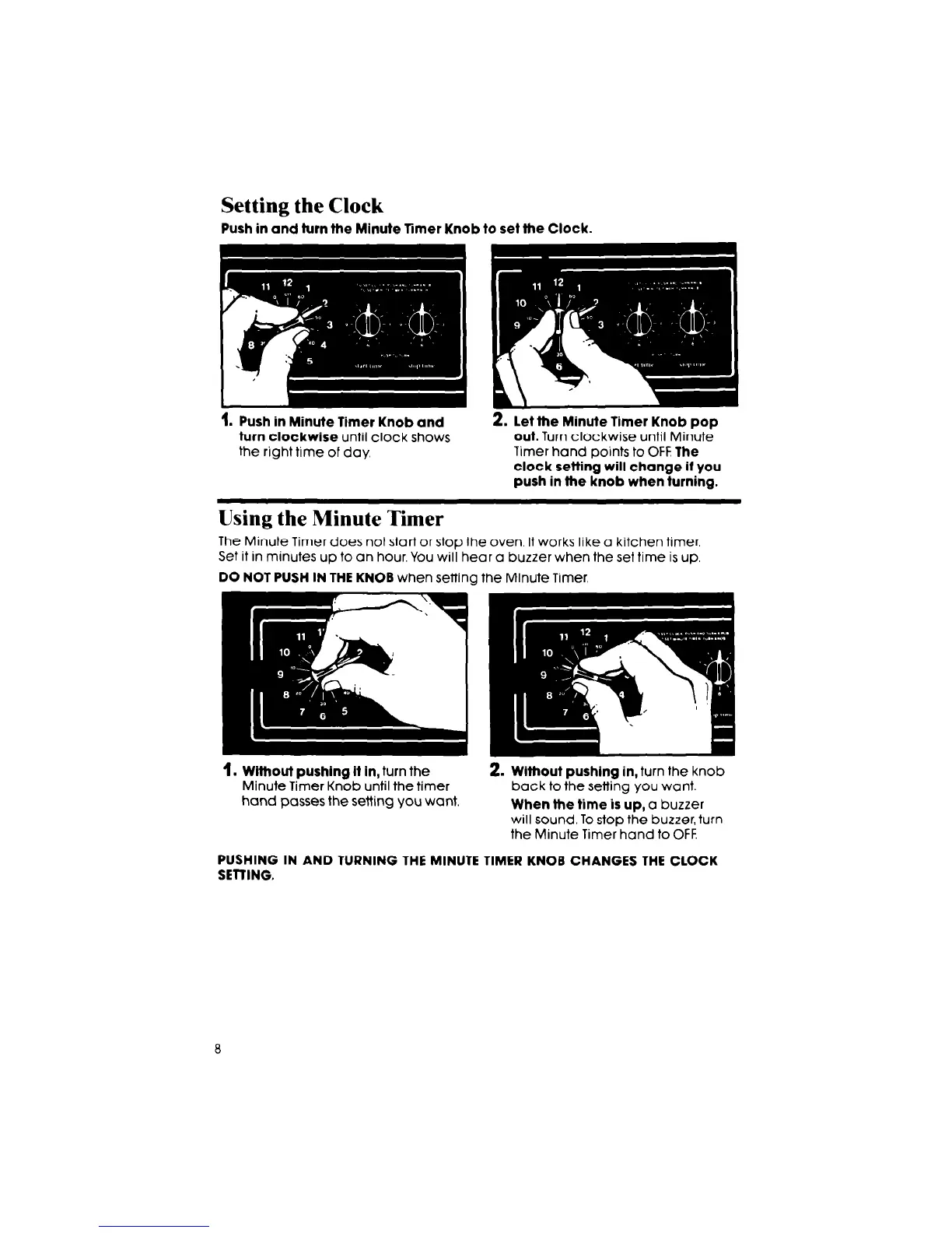 DO NOT PUSH IN THE KNOB when setting the Minute Timer.
