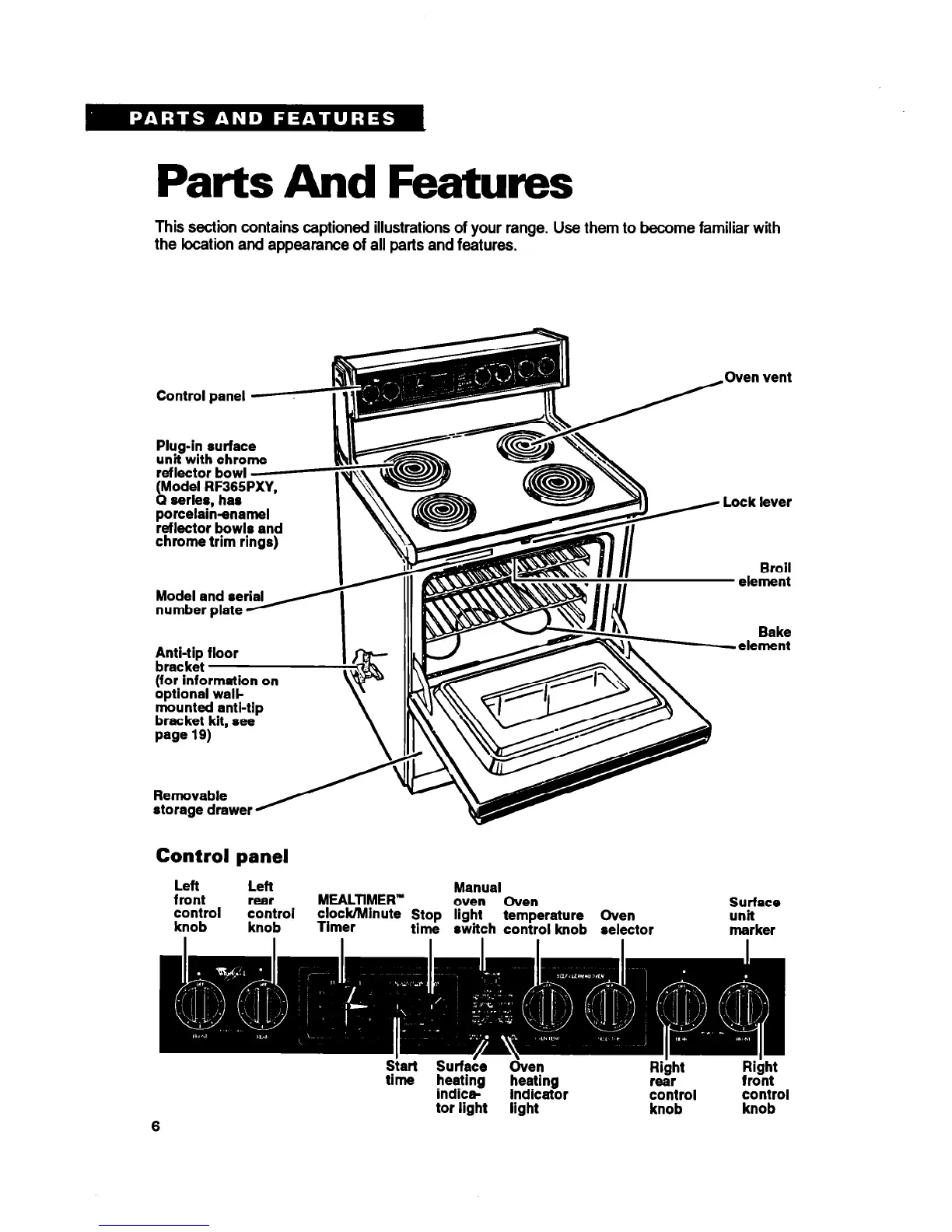 Whirlpool RF365PXY - Parts And Features; Control panel