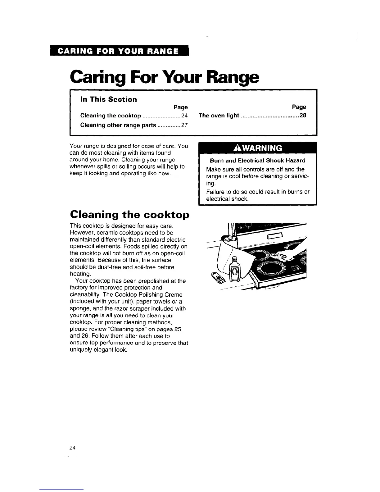 Cleaning other range parts . . . . m . . . . . . . . . 27