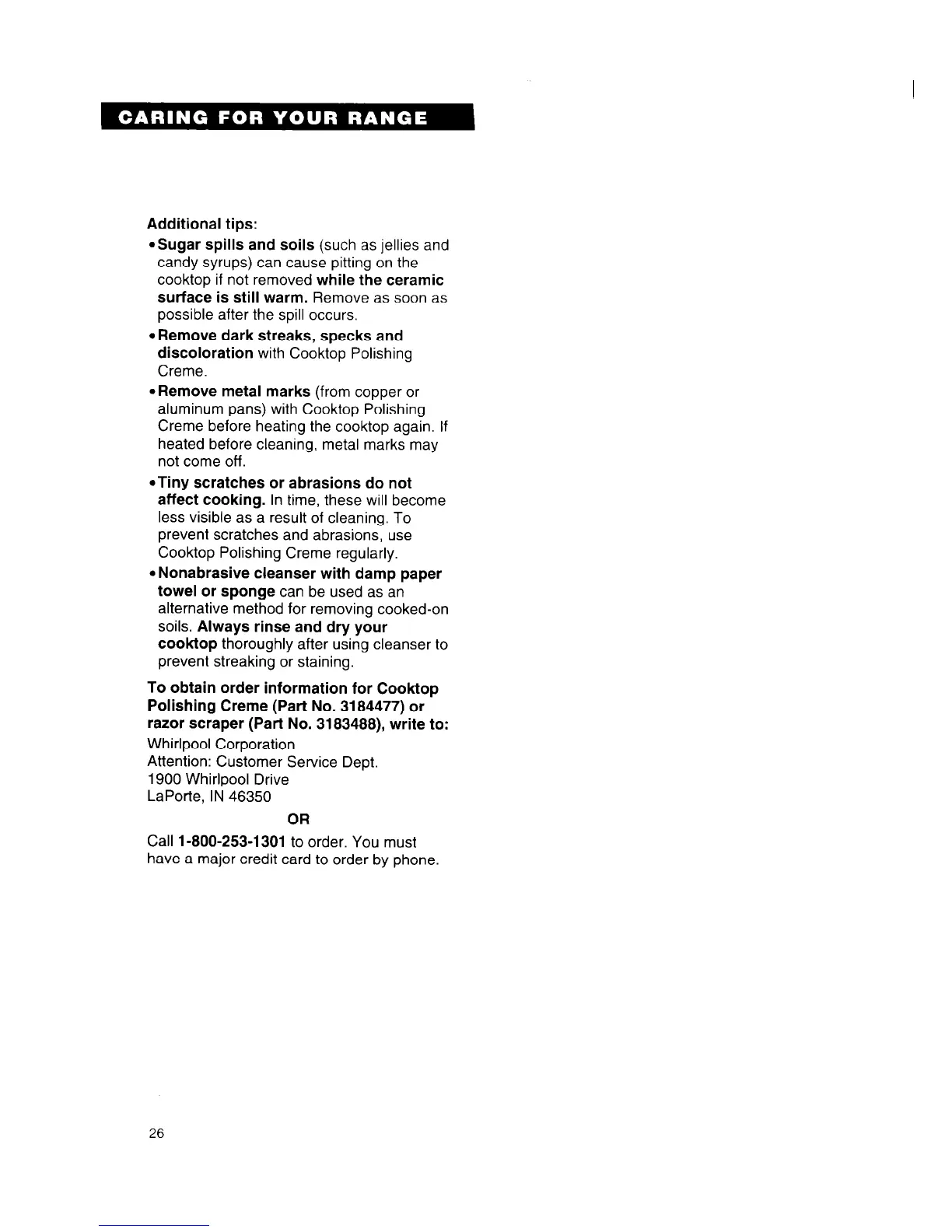 razor scraper (Part No. 3183488), write to: