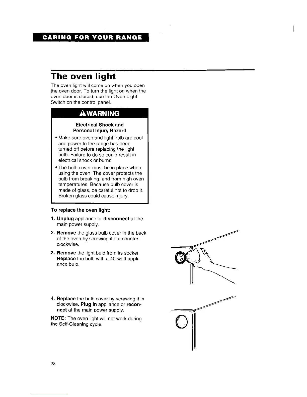 l Make sure oven and light bulb are cool